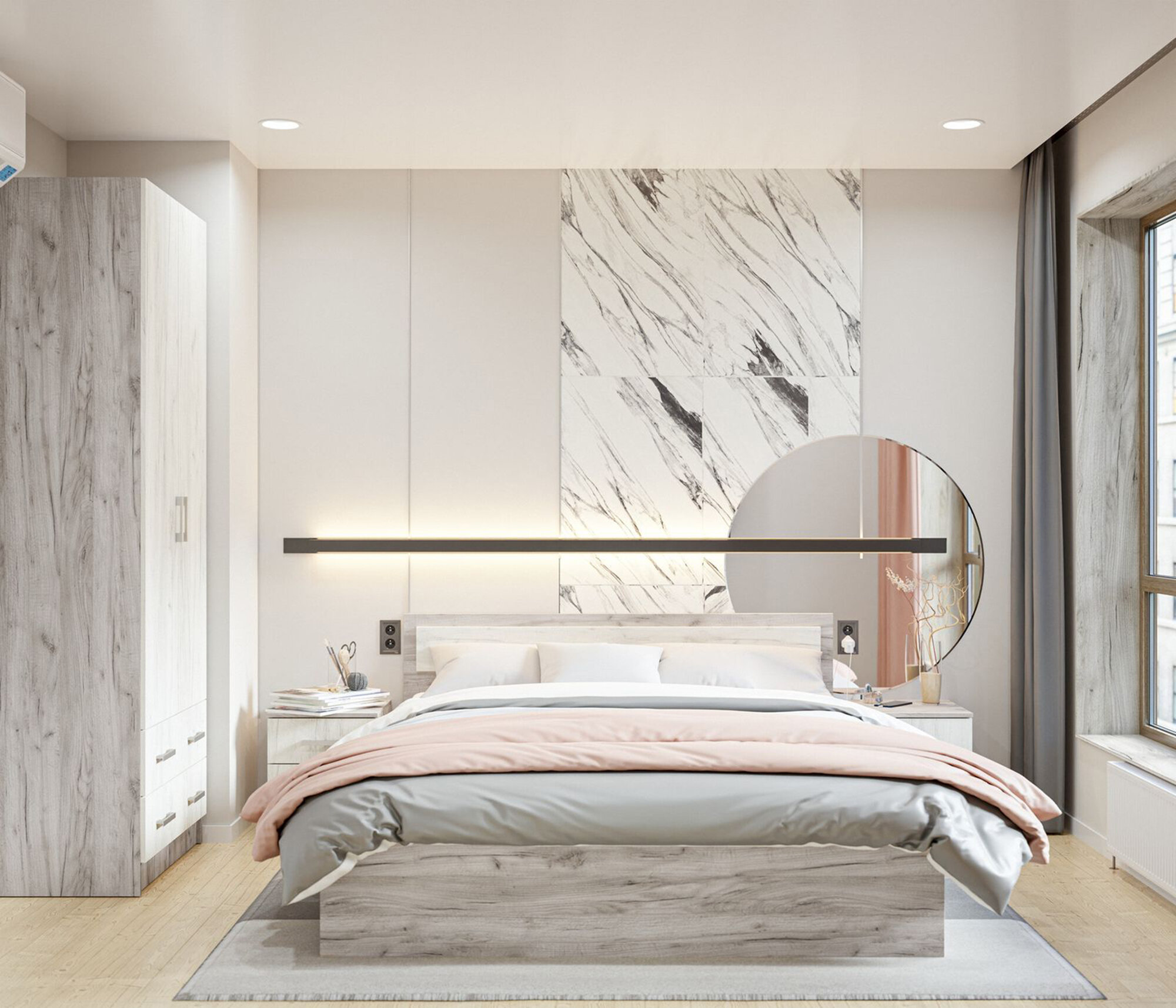 Кровать двуспальная Гармония КР 610 1,8, дуб крафт белый/дуб крафт серый