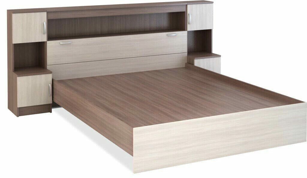 Кровать с прикроватным блоком Стендмебель Бася КР 552 (235х102х223см) шимо темный-шимо светлый