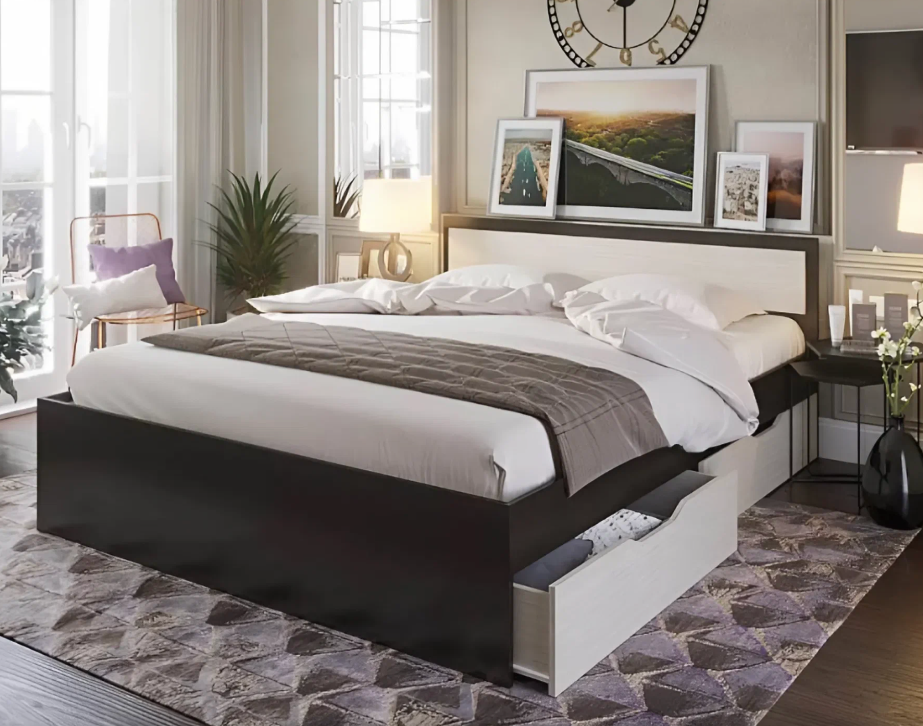 Кровать двуспальная, с ящиками Гармония 160х200, венге/дуб белфорт