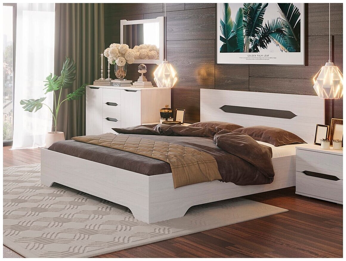Кровать двуспальная 1.6м для спальни, без ящиков, с основанием