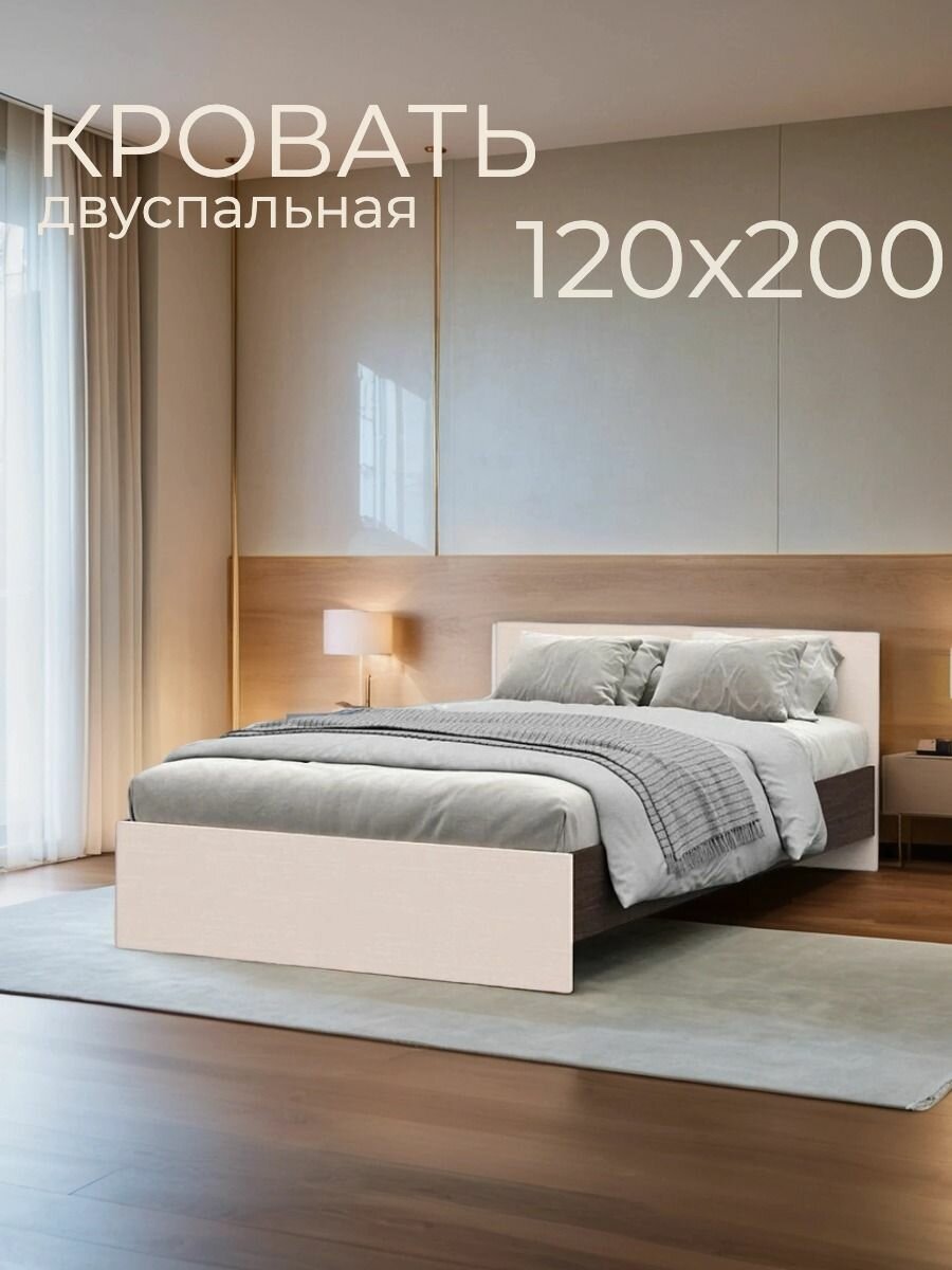 Двуспальная кровать МФ Стендмебель "Гармония" КР 606 1,2, венге/белфорт, ЛДСП, 203,2x120х78 см