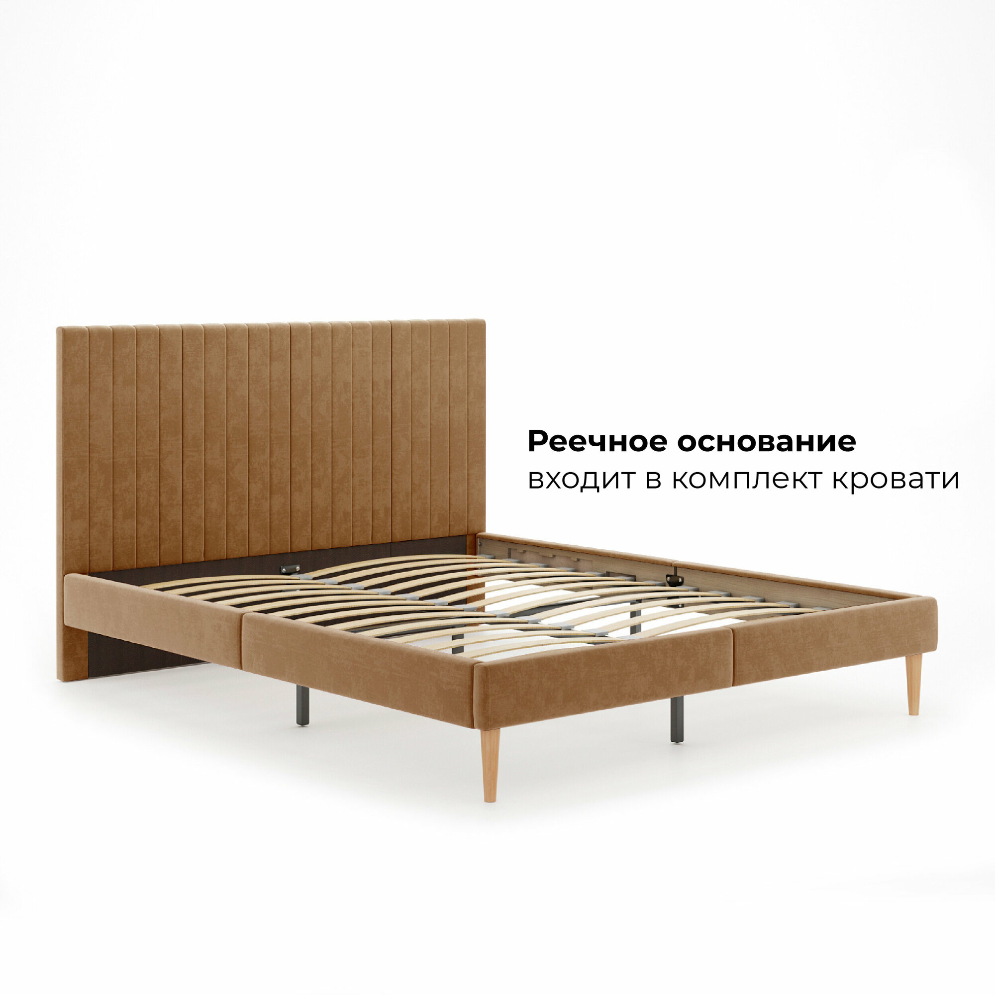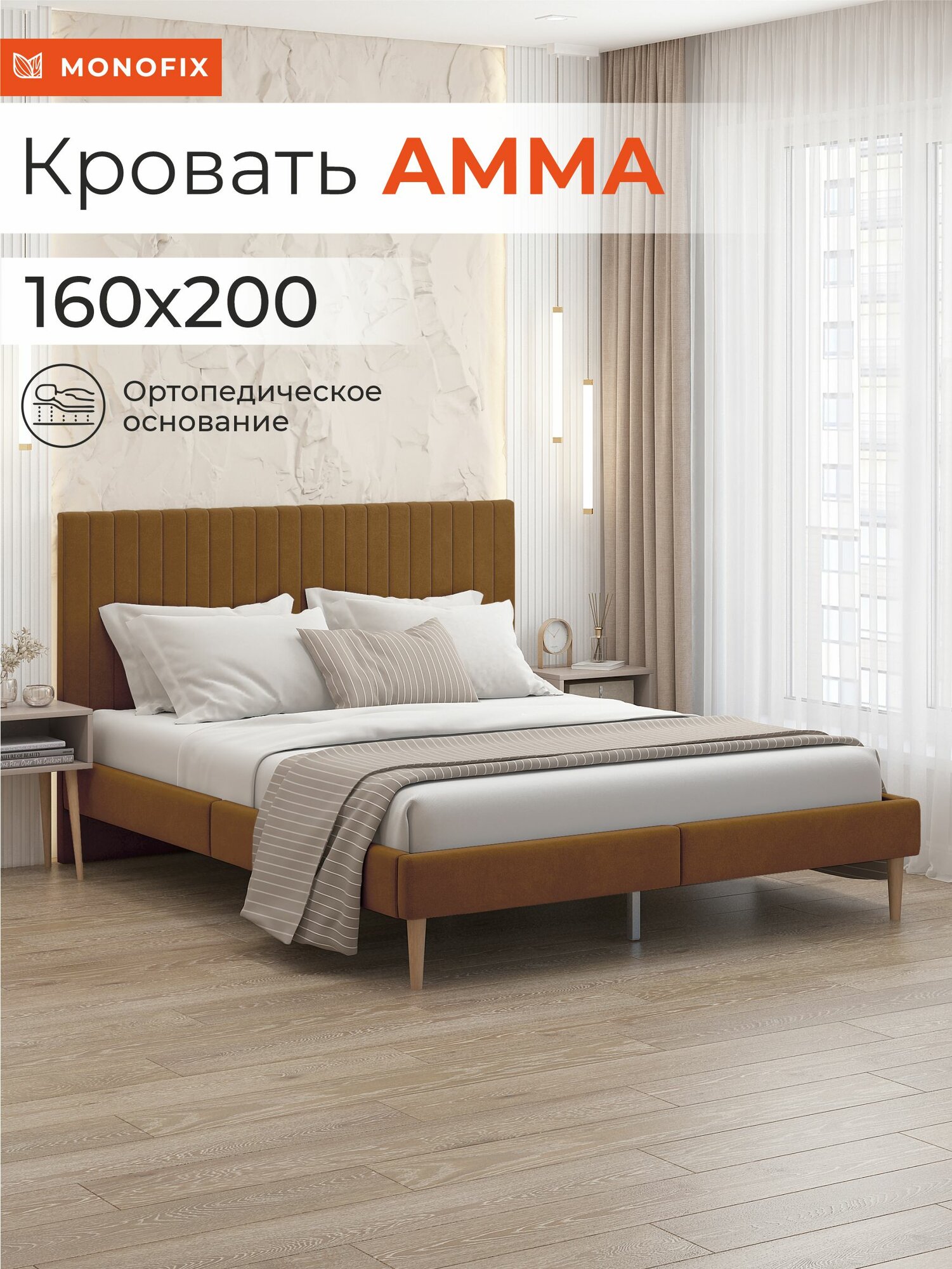 Кровать MONOFIX амма двуспальная, велюр светло-коричневый (№6), 160х200