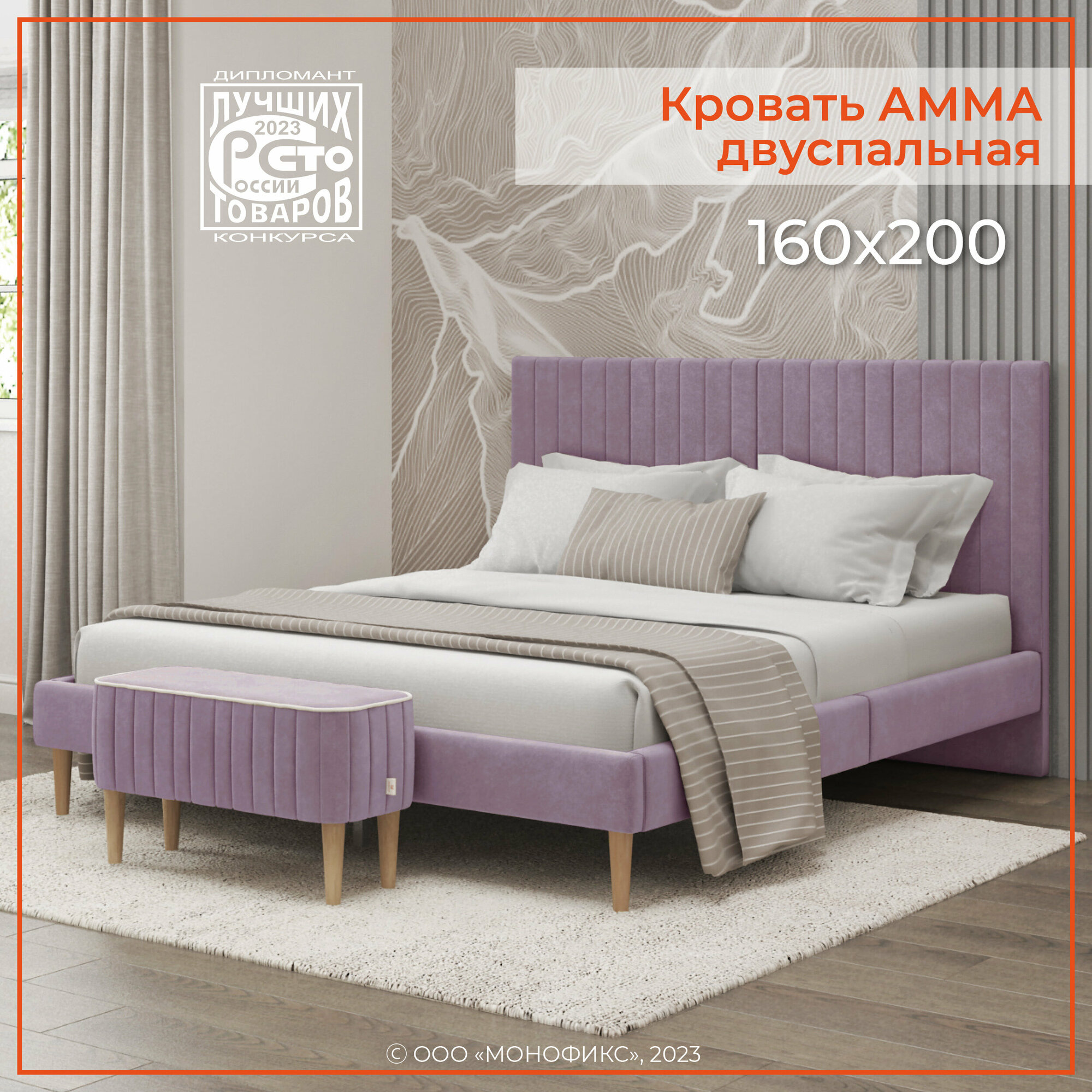 СохранитьКровать MONOFIX амма двуспальная, велюр сиреневый (№11), 160х200 интересное: