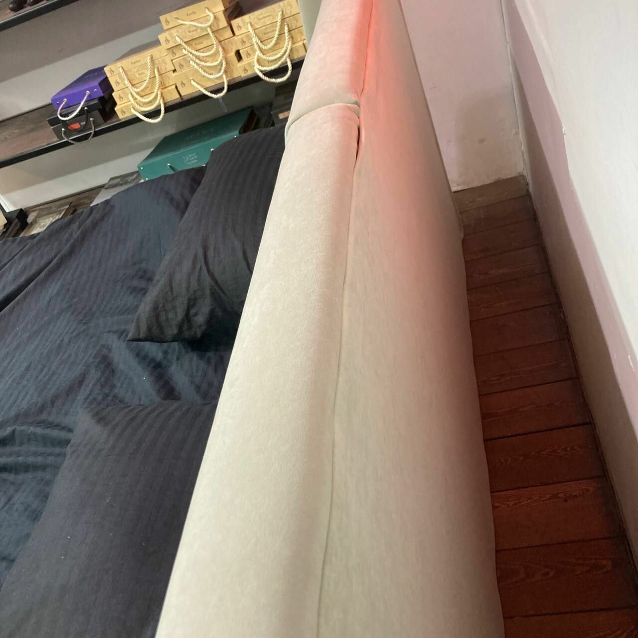 Кровать двуспальная «Касл» Банда мастеров, кремовая рогожка, 180x200см