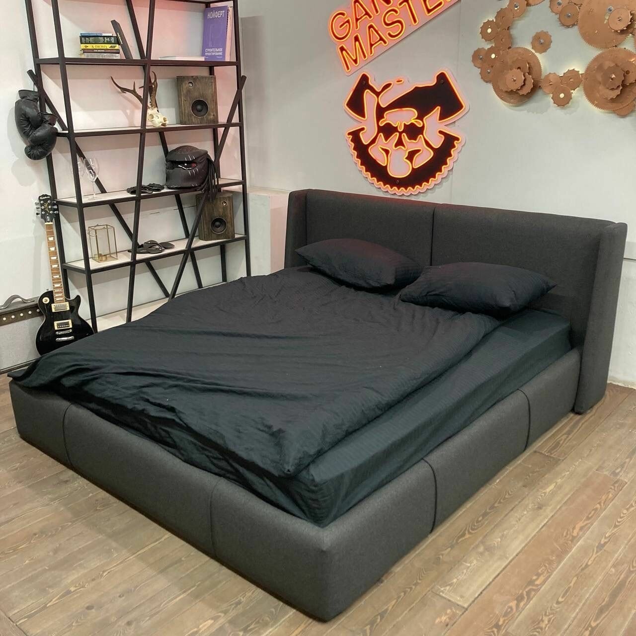Кровать двуспальная «Касл» Банда мастеров, графит антивандальный велюр, 200x200см