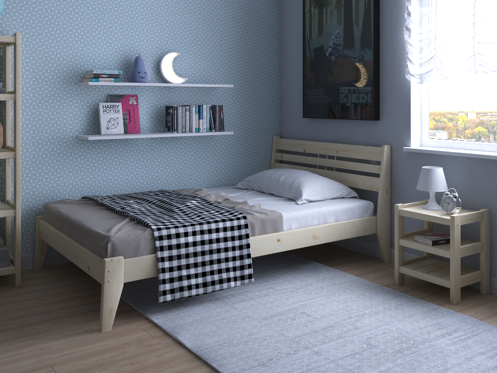 Кровать 140х200 см полутороспальная деревянная в Скандинавском стиле