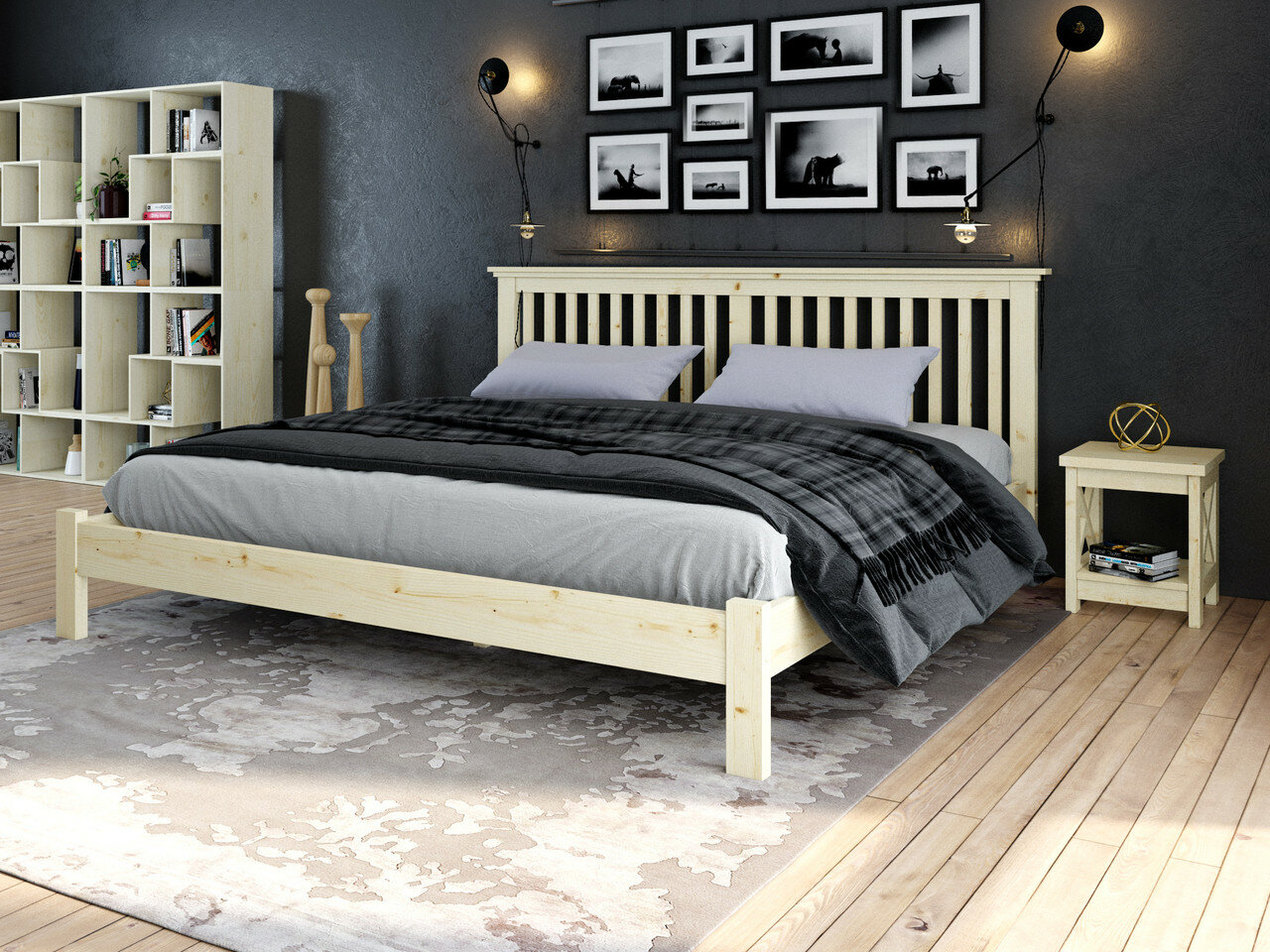Кровать 160х200 см двуспальная деревянная в Скандинавском стиле