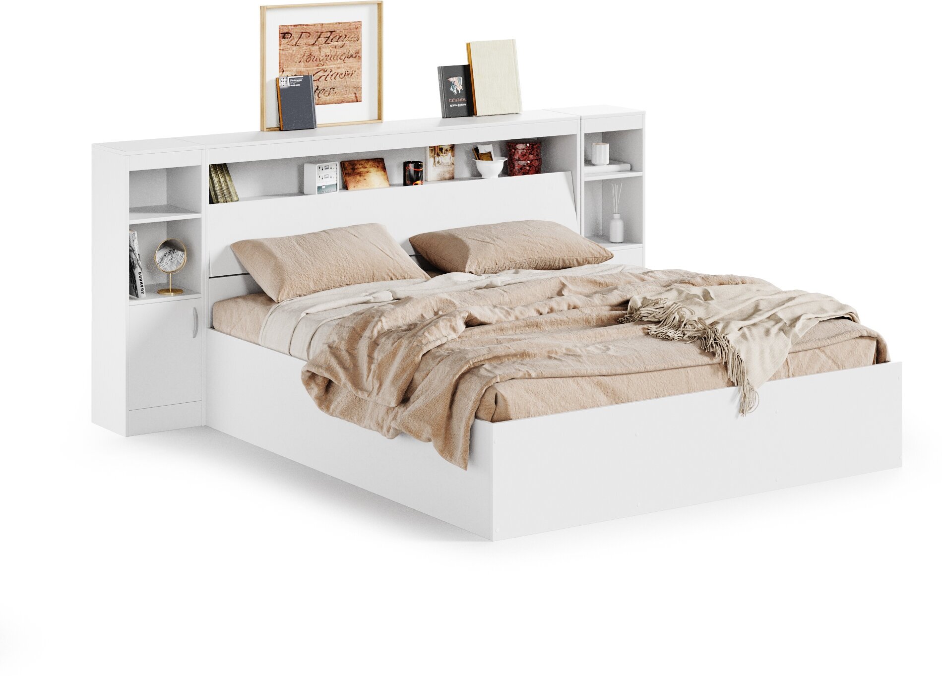 Купить Кровать Виктория 140х200 белая с прикроватным блоком и двумя тумбами