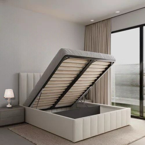 Кровать двуспальная 160х200 с подъемным механизмом и мягким изголовьем, Слоновая кость
