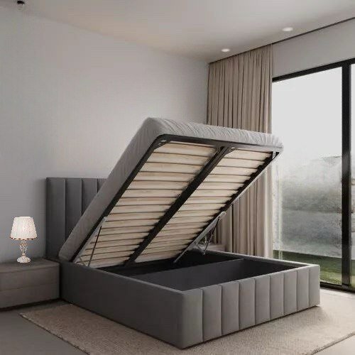 СохранитьКровать двуспальная 180х200 с подъемным механизмом и ящиками для белья, Темно-серая интересное: