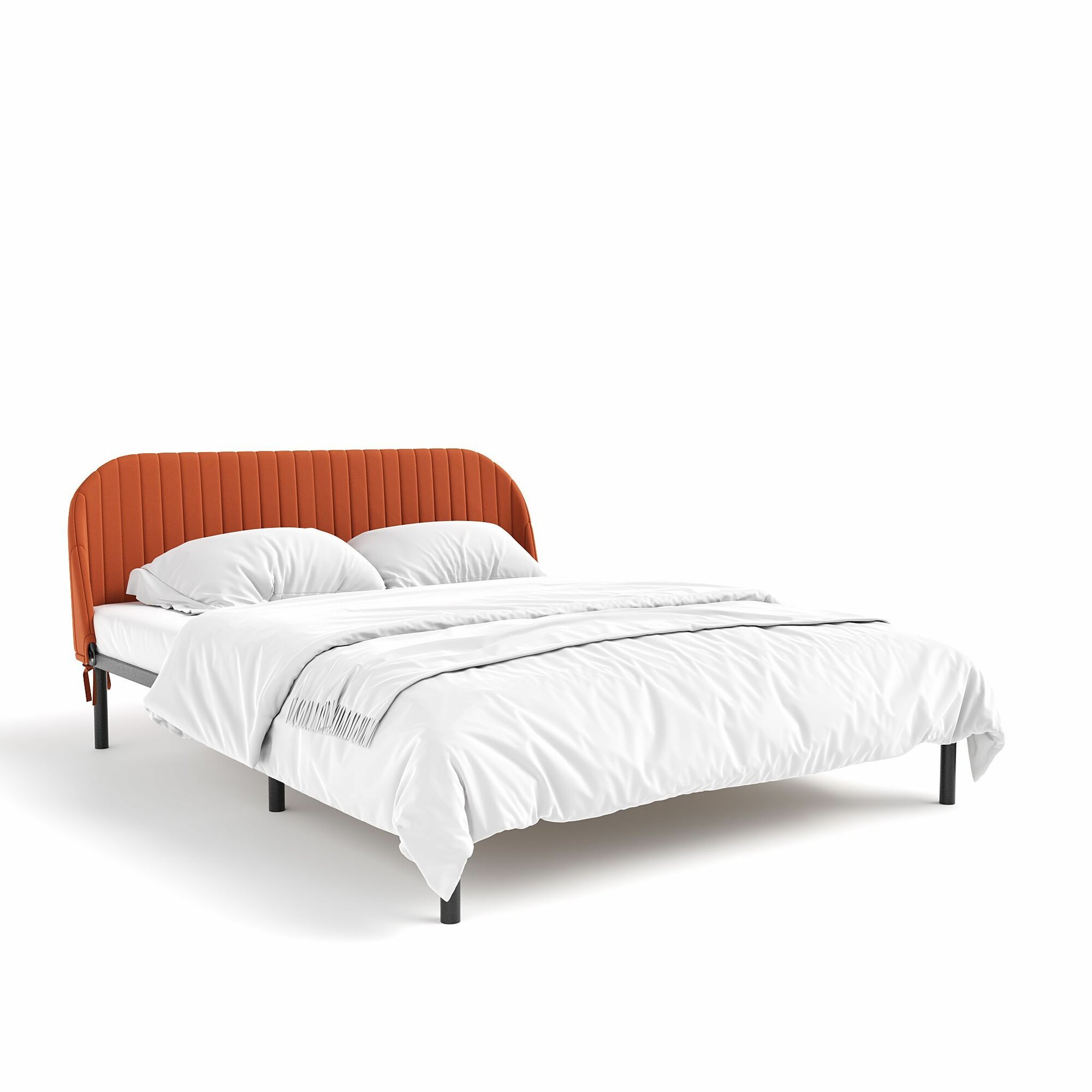 Купить Кровать "Рейн блэк", 160х200 см, велюр Velutto оранжевый, черный каркас, DreamLite