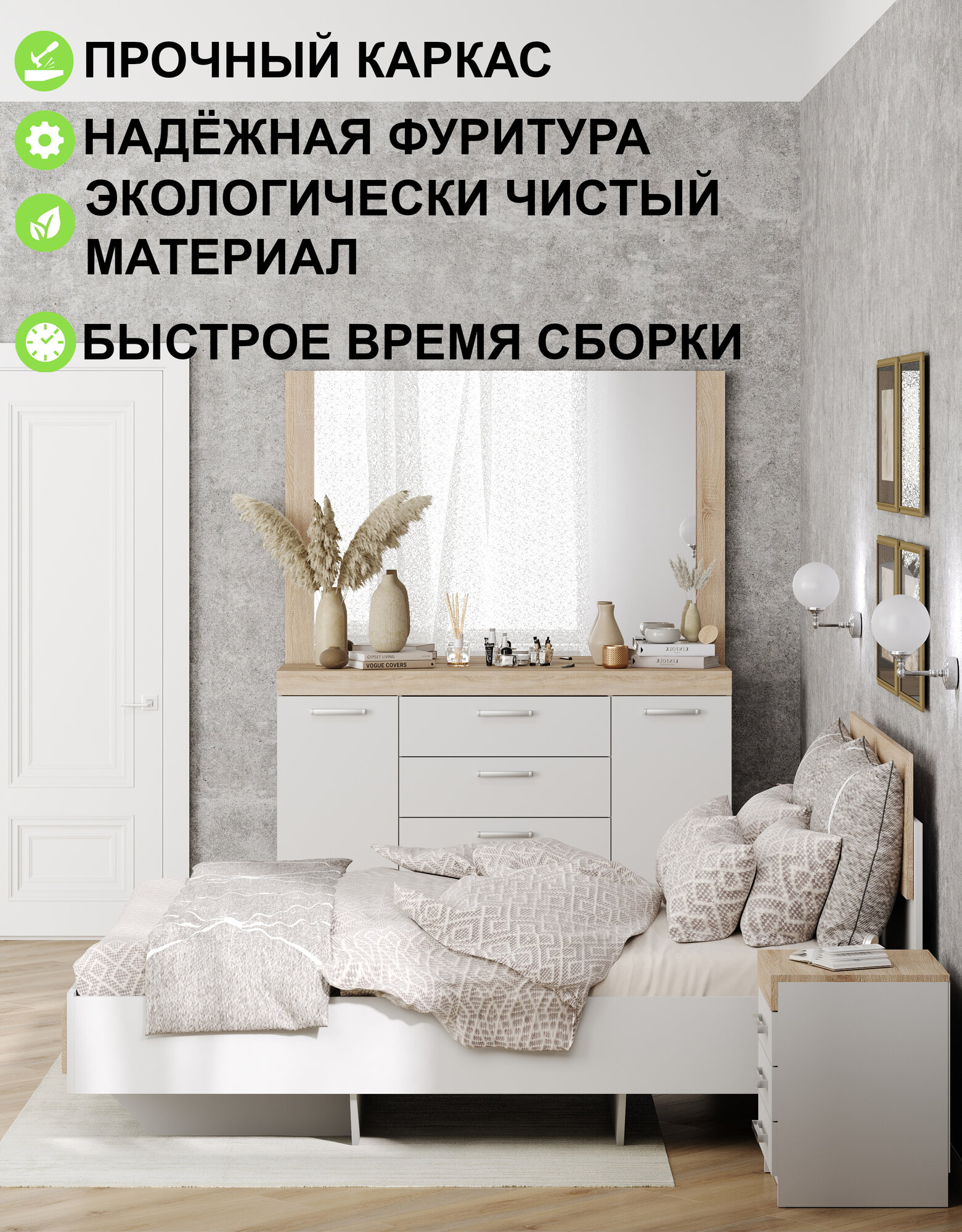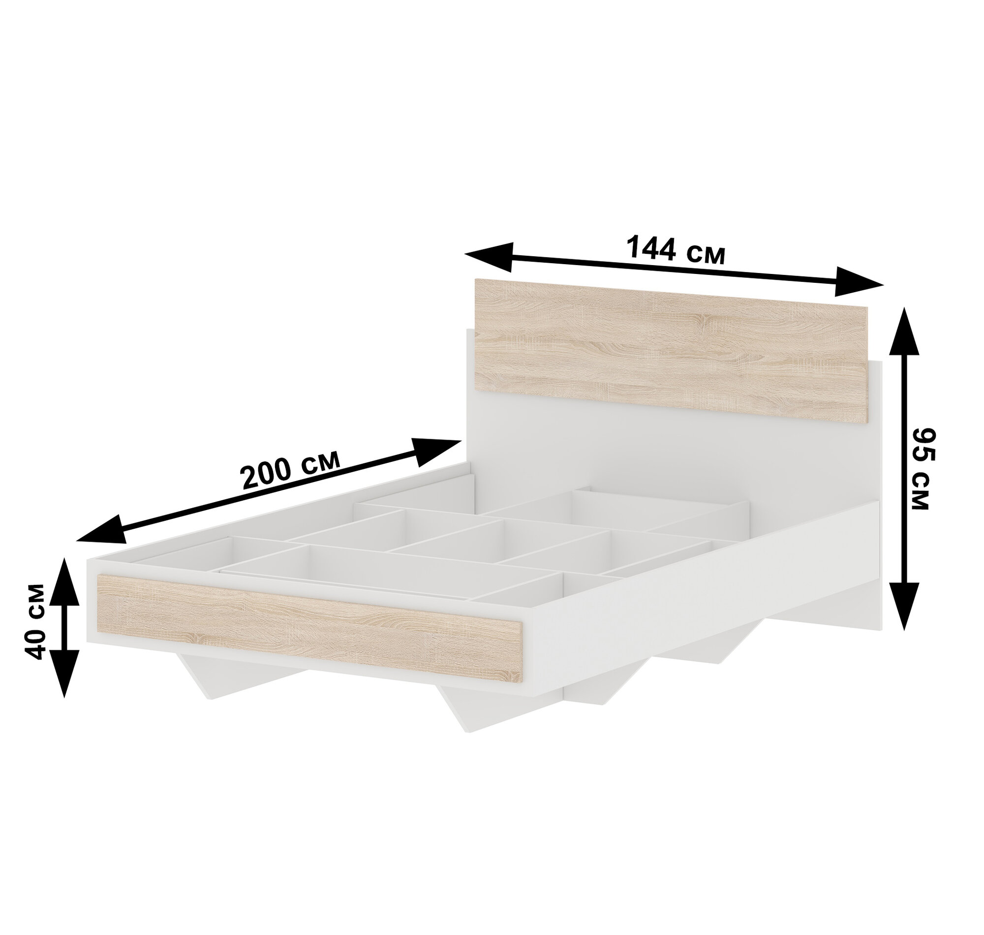 Кровать "Модерн" 1,4, В*Ш*Г (см) 95x144x205, ЛДСП, белый / дуб сонома интересное:
