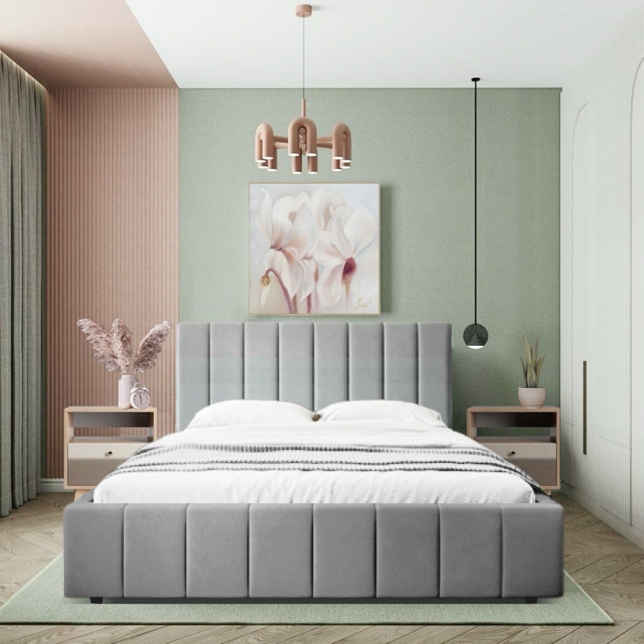 Кровать Лети двуспальная 200х200 с ортопедическим основанием и мягким изголовьем
