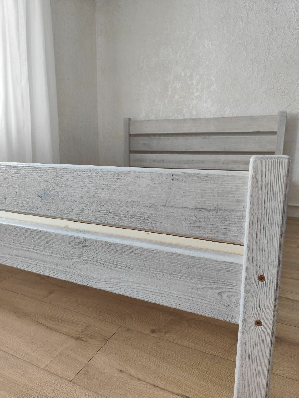 Кровать двуспальная 180x200 деревянная из массива состаренная