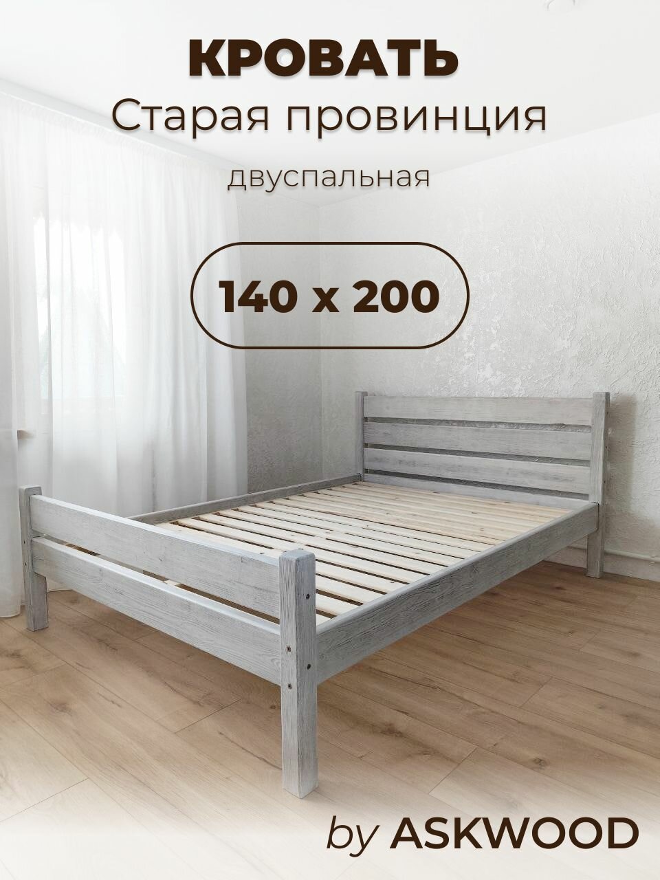 Кровать двуспальная 180x200 деревянная из массива состаренная