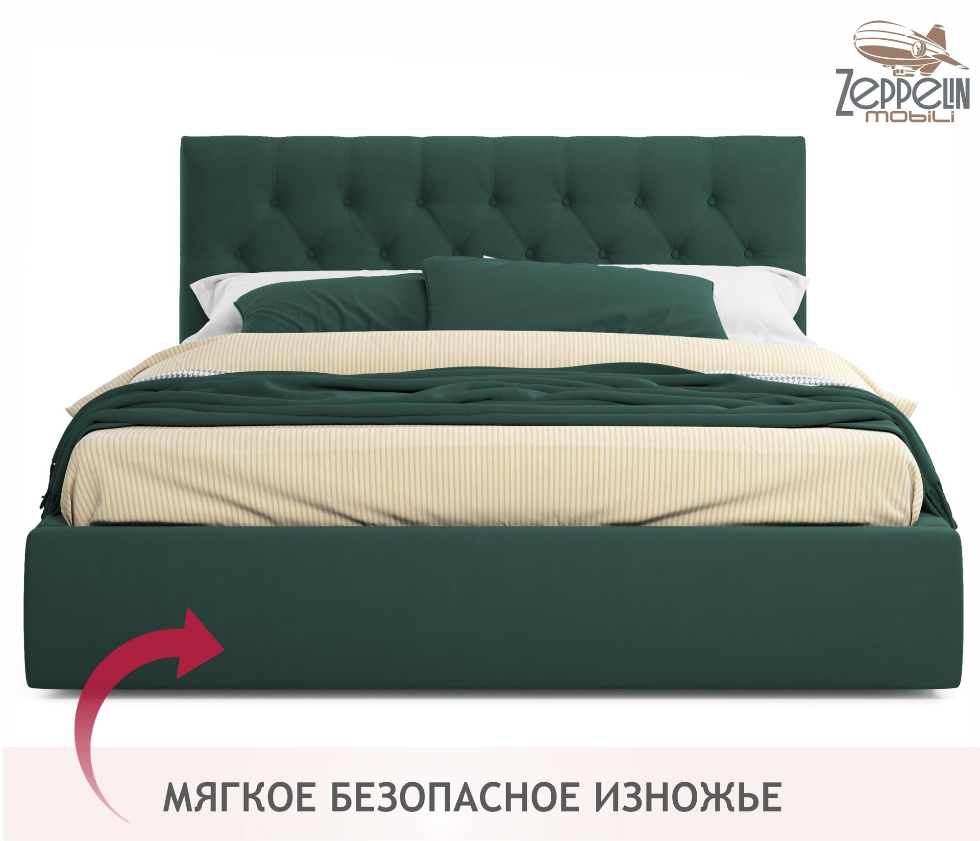 СохранитьДвуспальная кровать Verona 1600 изумруд Zeppelin с ящиками и ортопедическим основанием, 160х200, мягкая из велюра, ламели, выкатные ящики интересное: