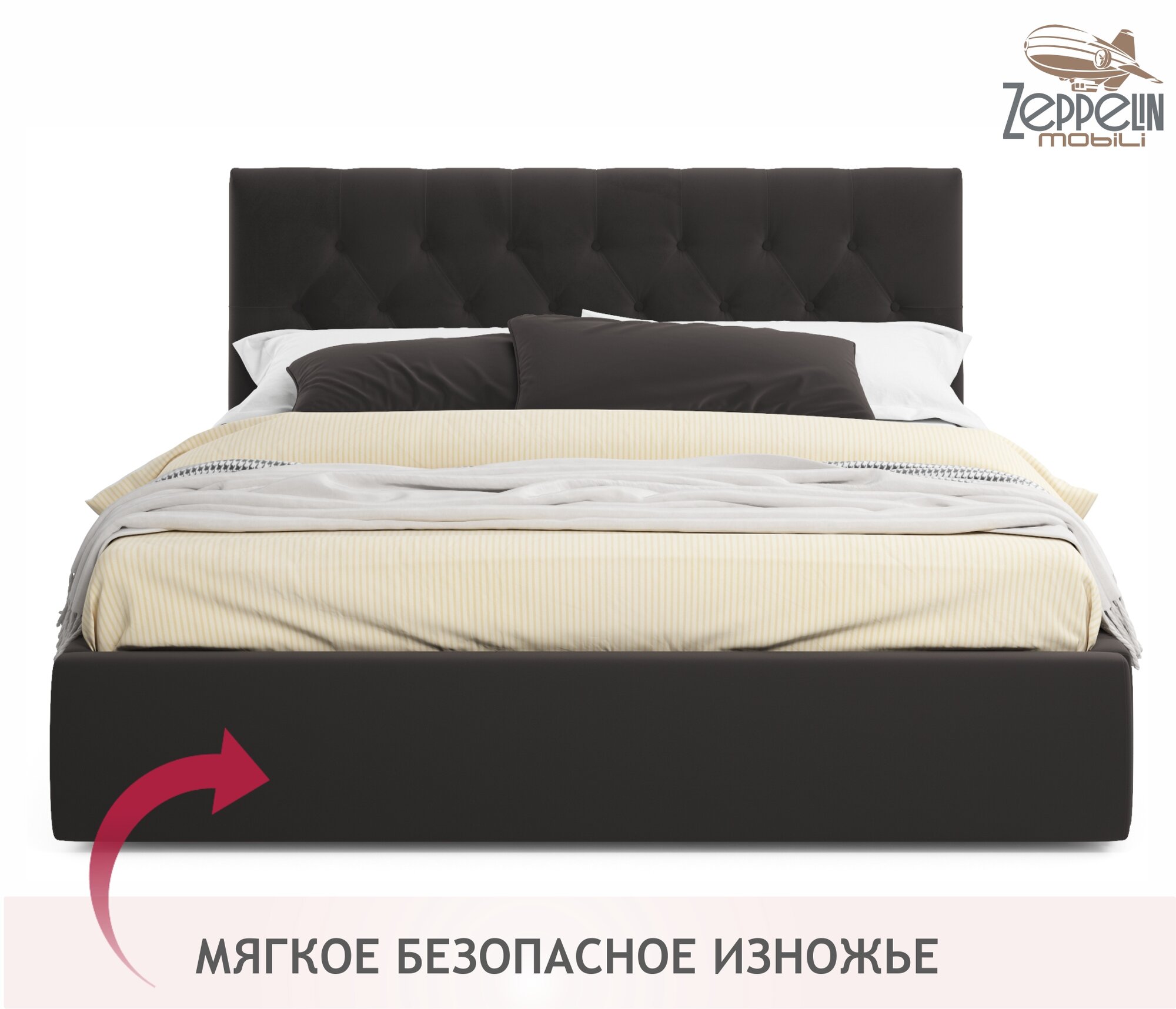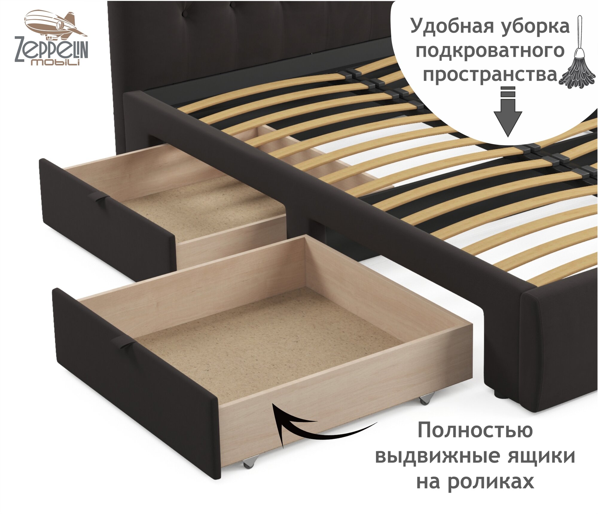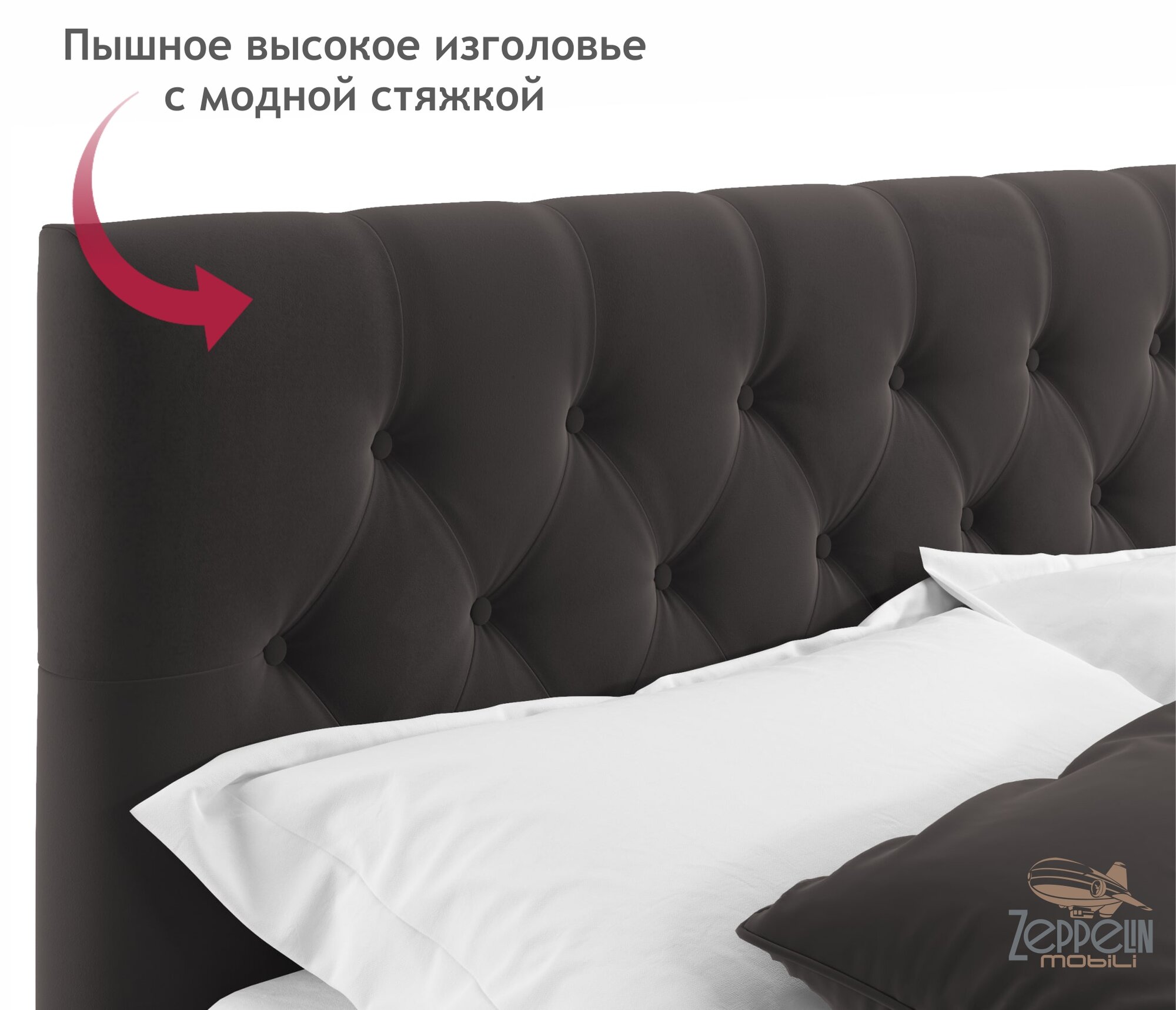 Купить Двуспальная кровать Verona 1600 шоколад Zeppelin с ящиками и ортопедическим основанием, 160х200, мягкая из велюра, ламели, выкатные ящики