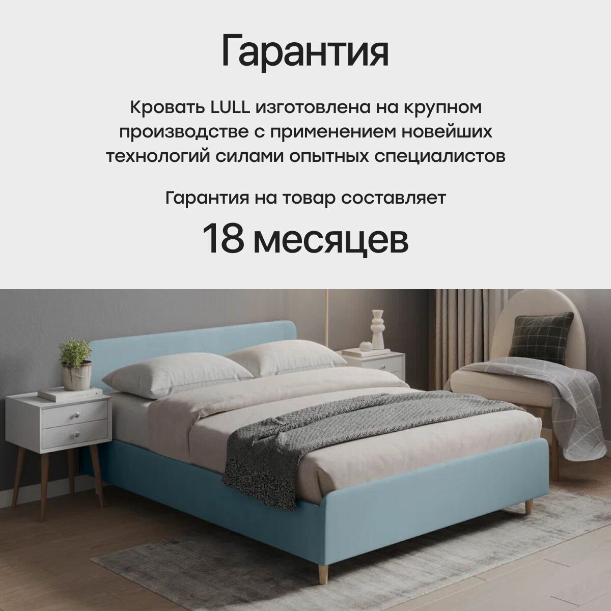 СохранитьДвуспальная кровать 140х200 "LULL" с мягким изголовьем для дома, для спальни. Велюр голубой Dakota 18 интересное: