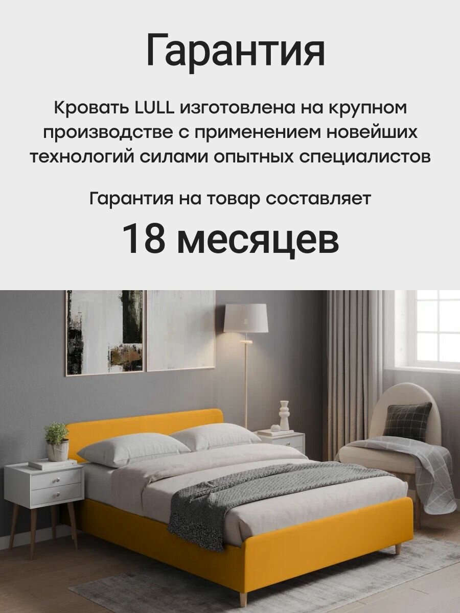 Двуспальная кровать 160х200 "LULL" с мягким изголовьем для дома, для спальни. Велюр желтый Dakota 16