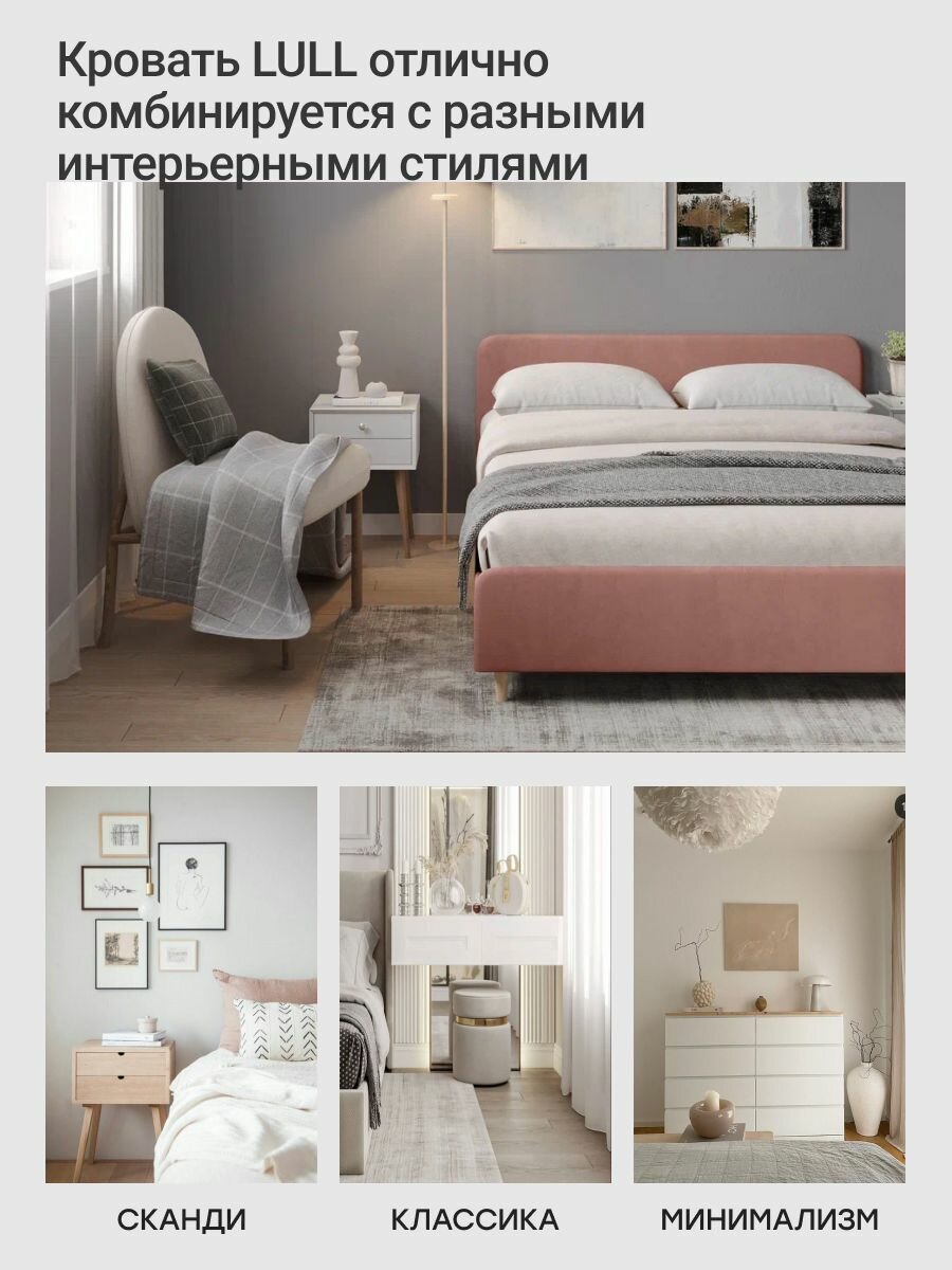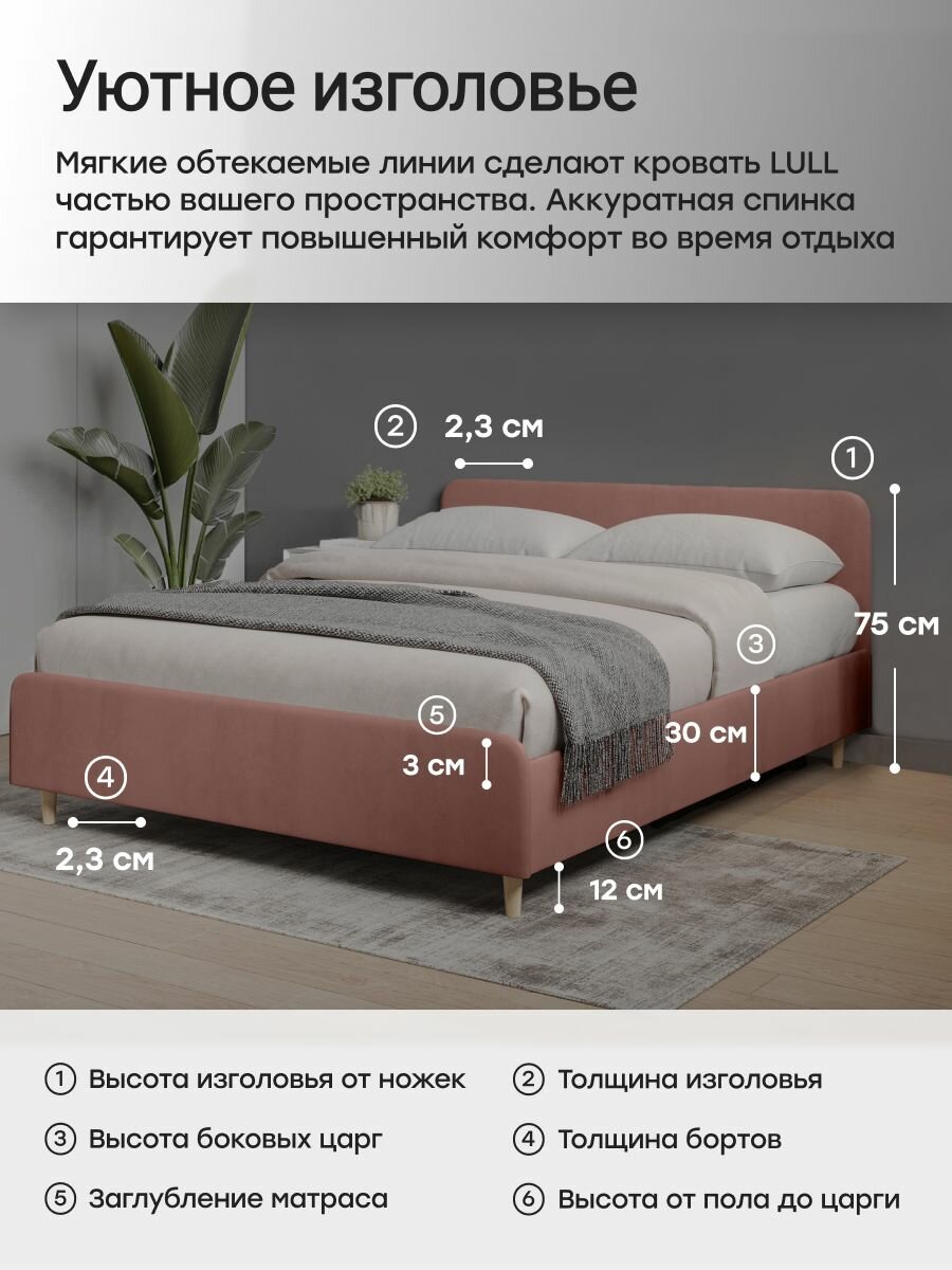 Двуспальная кровать 140х200 "LULL" с мягким изголовьем для дома, для спальни. Велюр розовый Dakota 26