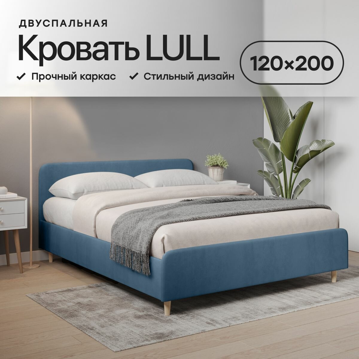 Двуспальная кровать 120х200 "LULL" с мягким изголовьем для дома, для спальни. Велюр синий Dakota 32