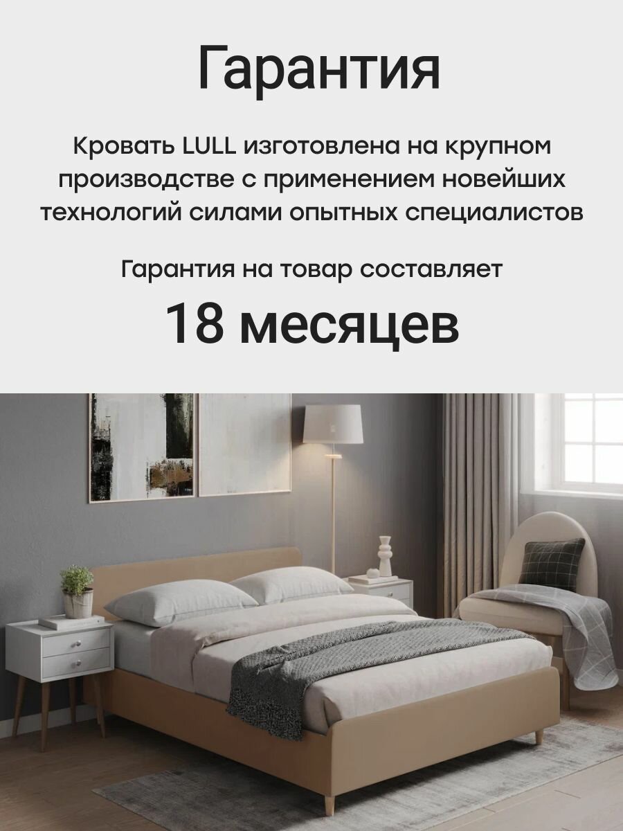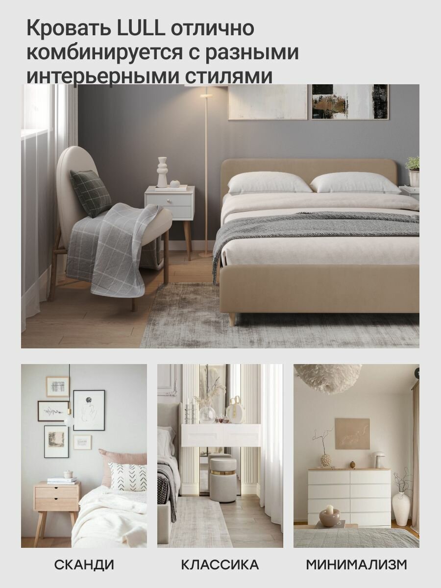 Двуспальная кровать 160х200 "LULL" с мягким изголовьем для дома, для спальни. Велюр бежевый Dakota 3