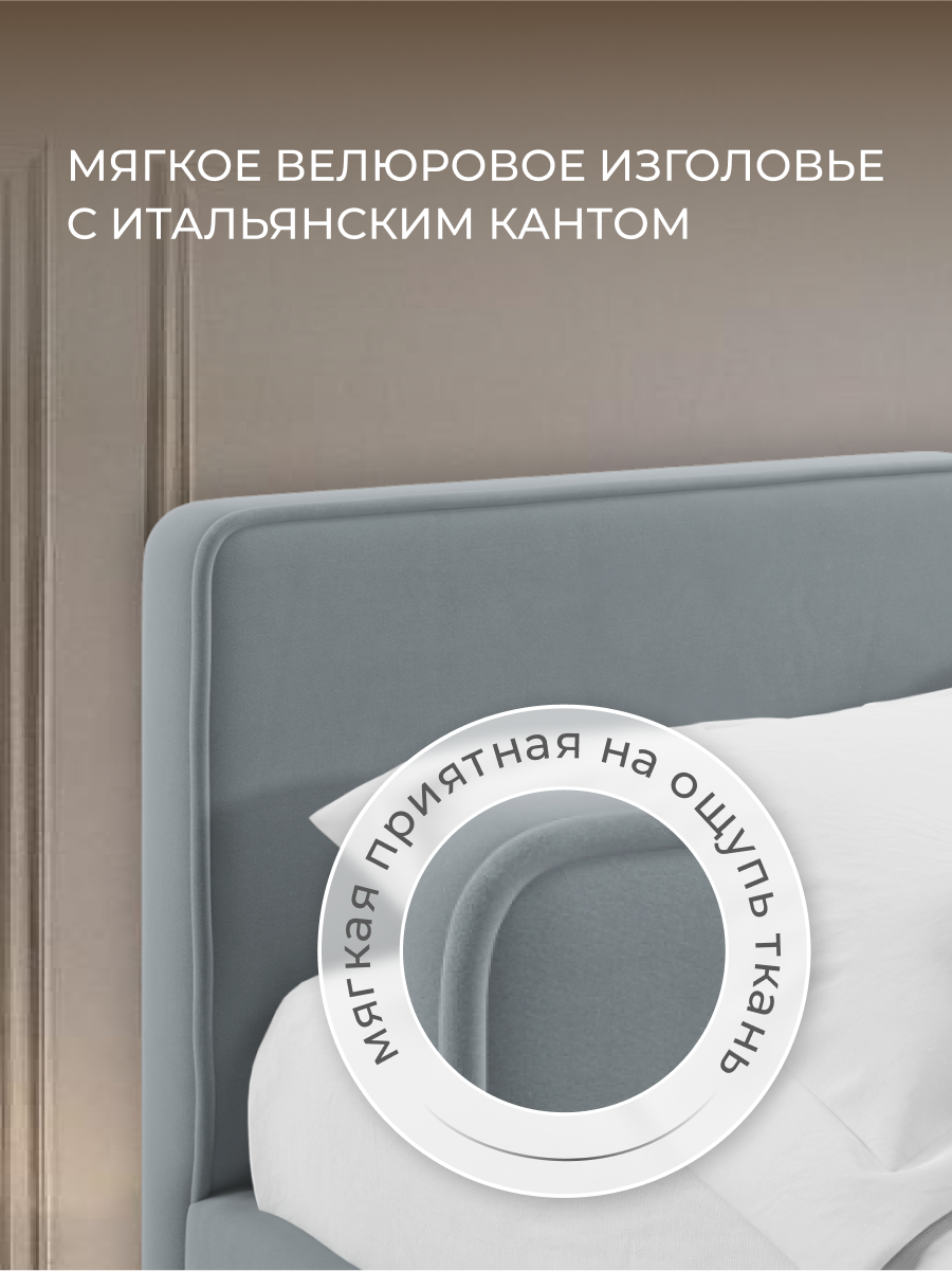 Кровать с матрасом Роза Серая Велюр 160х200
