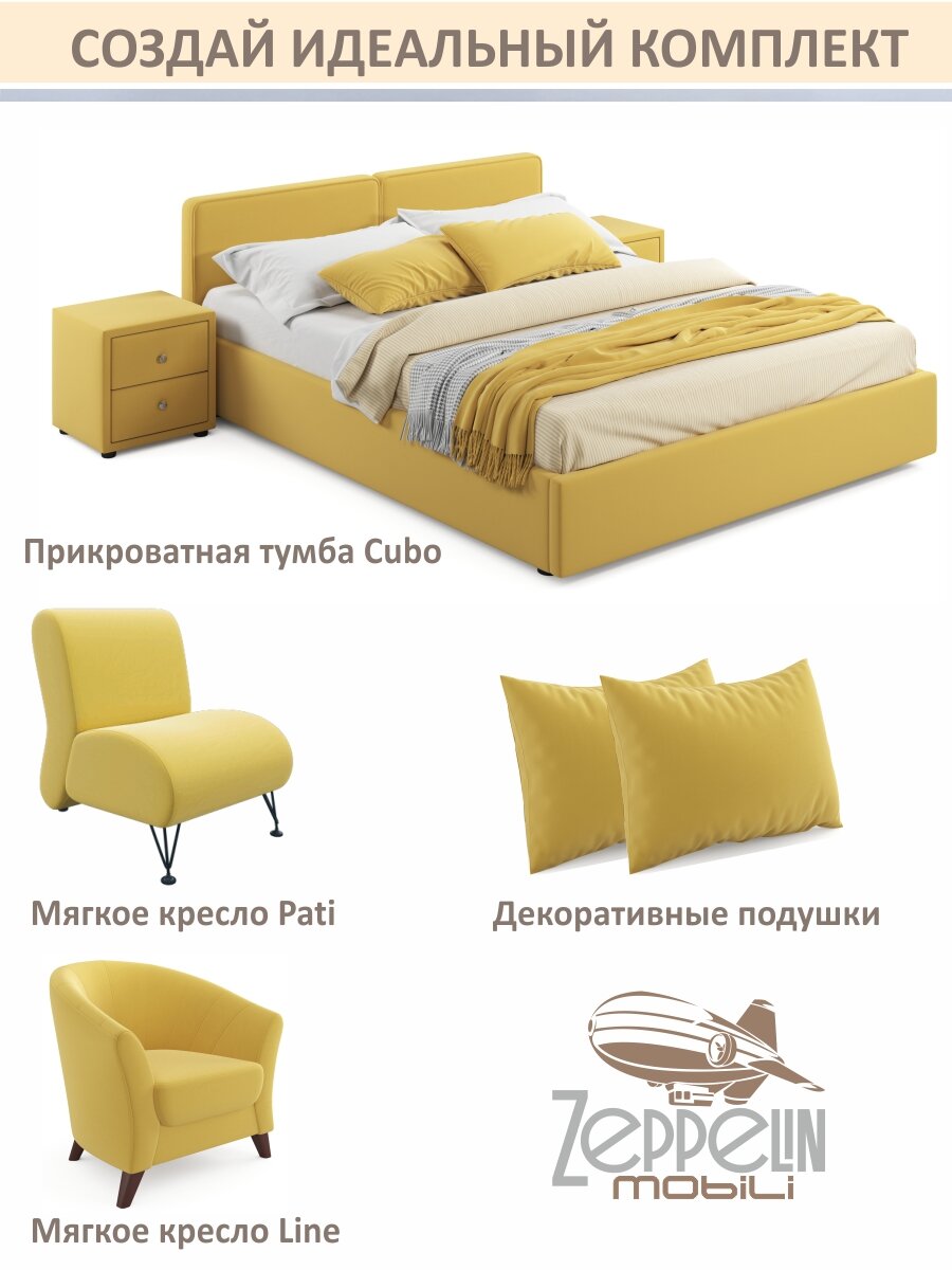 СохранитьМягкая кровать Erika 1600 Zeppelin Mobili, велюр желтый, с подъемным механизмом интересное: