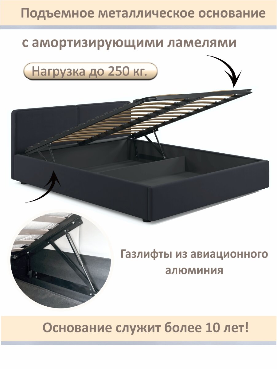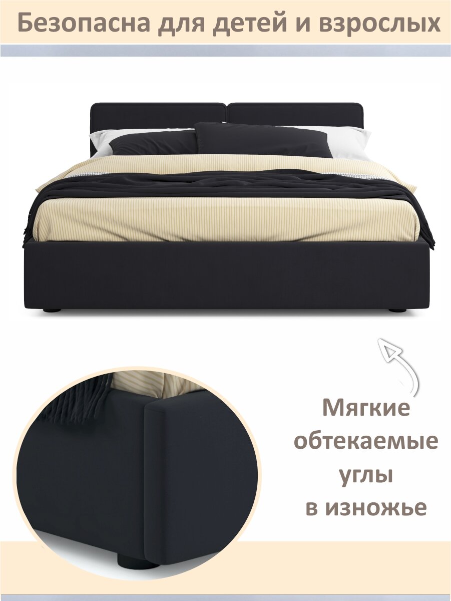 СохранитьМягкая кровать Erika 1600 Zeppelin Mobili, велюр черный, с подъемным механизмом интересное: