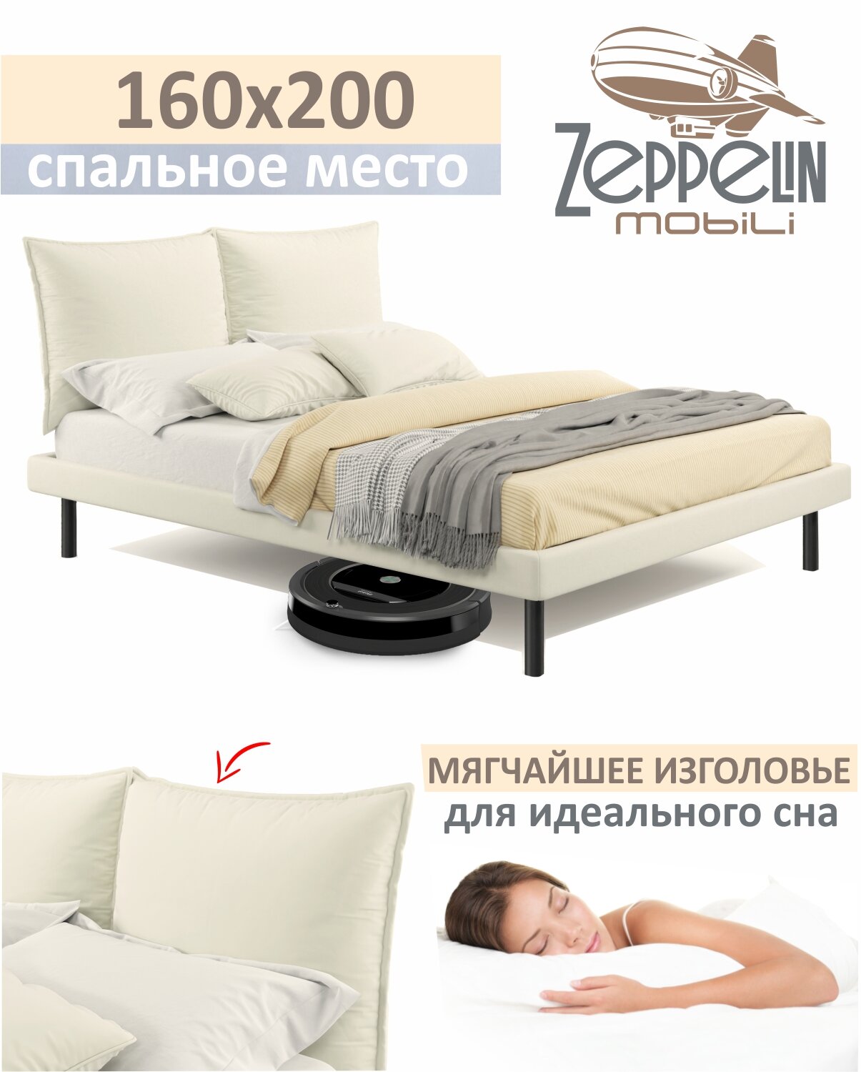 СохранитьКровать двуспальная Fly 160х200 бежевая Zeppelin с ортопедическим основанием, мягкая из велюра, ламели интересное: