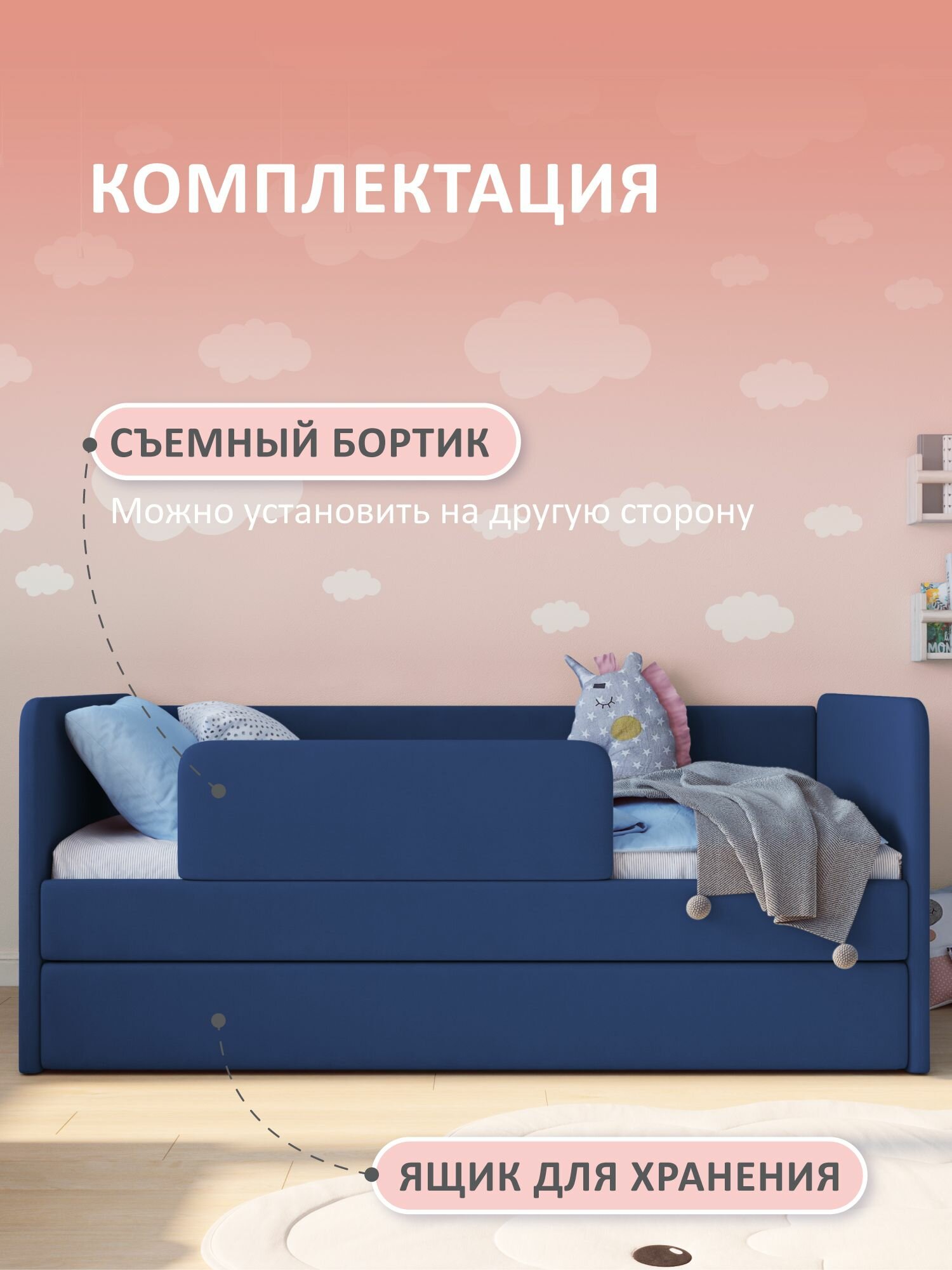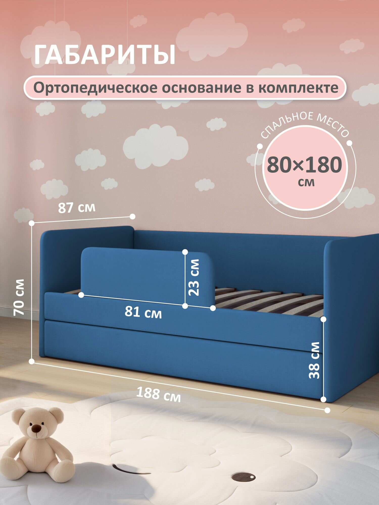Купить Кровать детская 180x80 Romack Jenny Сапфир с бортиком безопасности, ящиком для белья и ортопедическим основанием