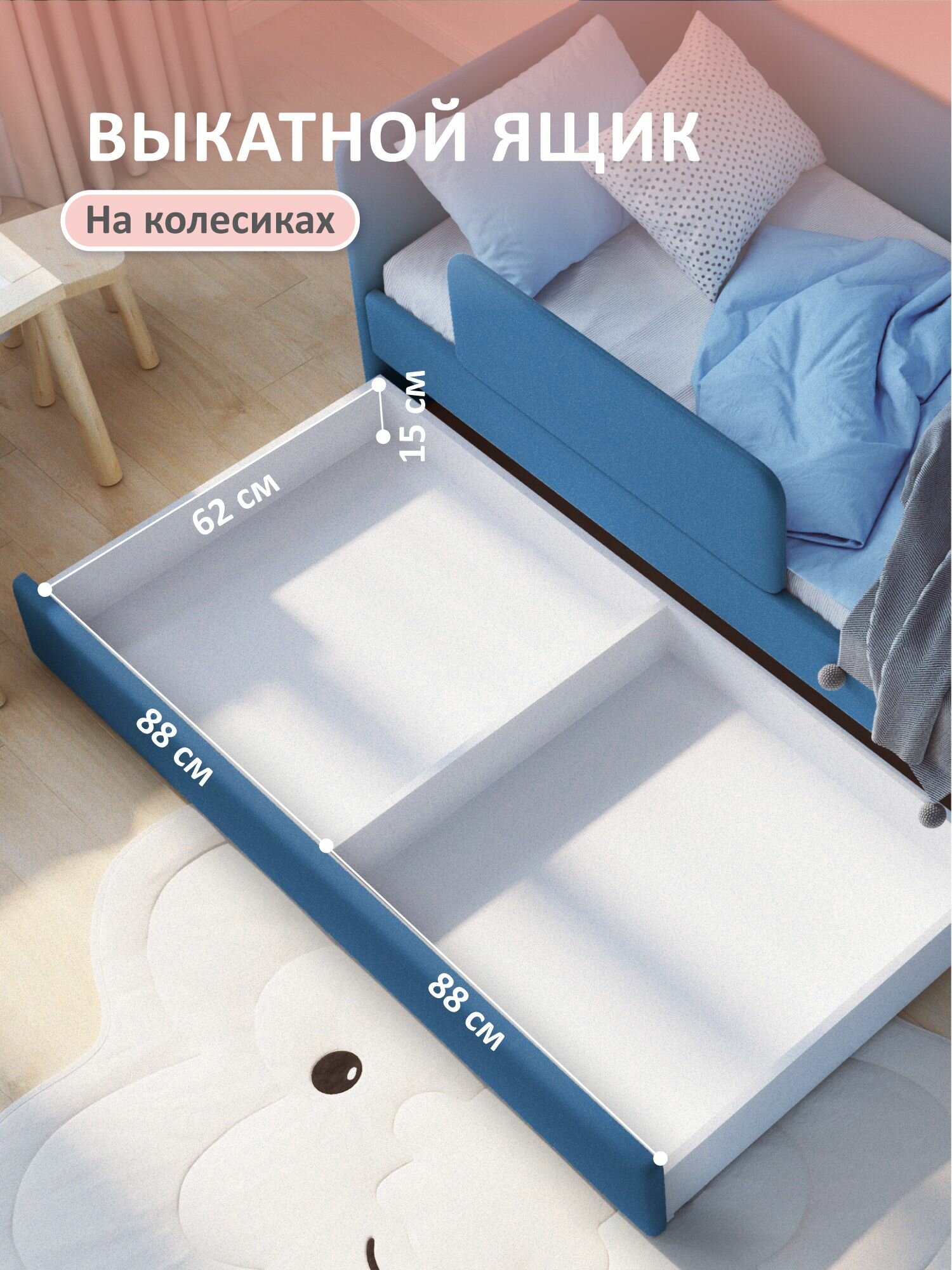 Кровать детская 180x80 Romack Jenny Голубой с бортиком безопасности, ящиком для белья и ортопедическим основанием