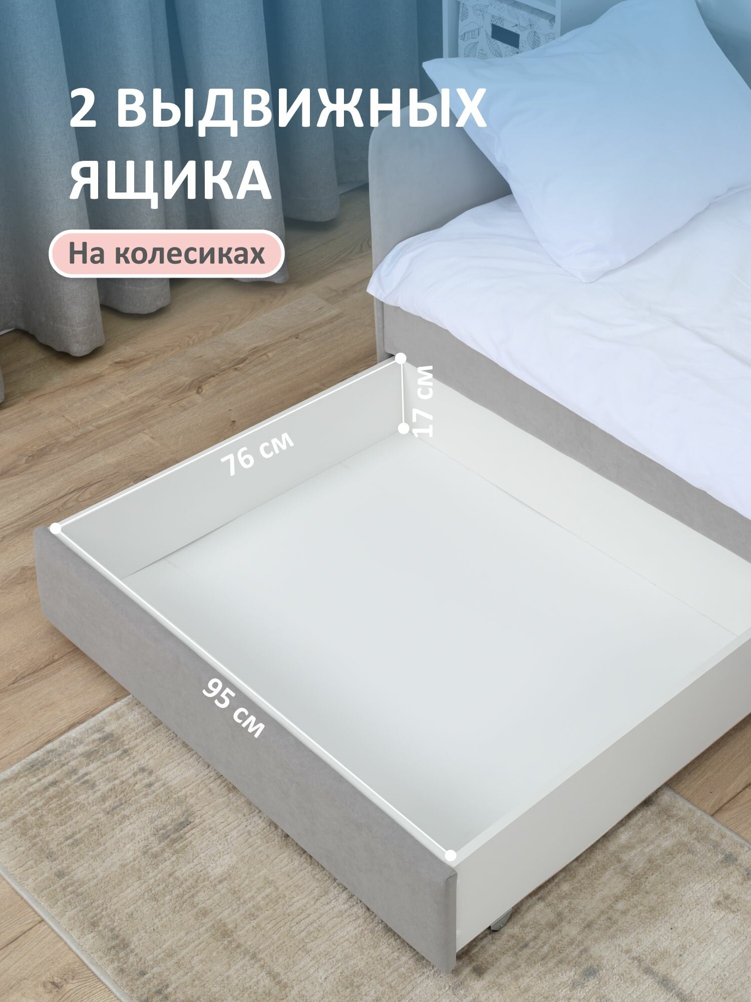 Купить Кровать детская 200x90 Romack Jenny Серый пух с бортиком безопасности, ящиками для хранения и ортопедическим основанием