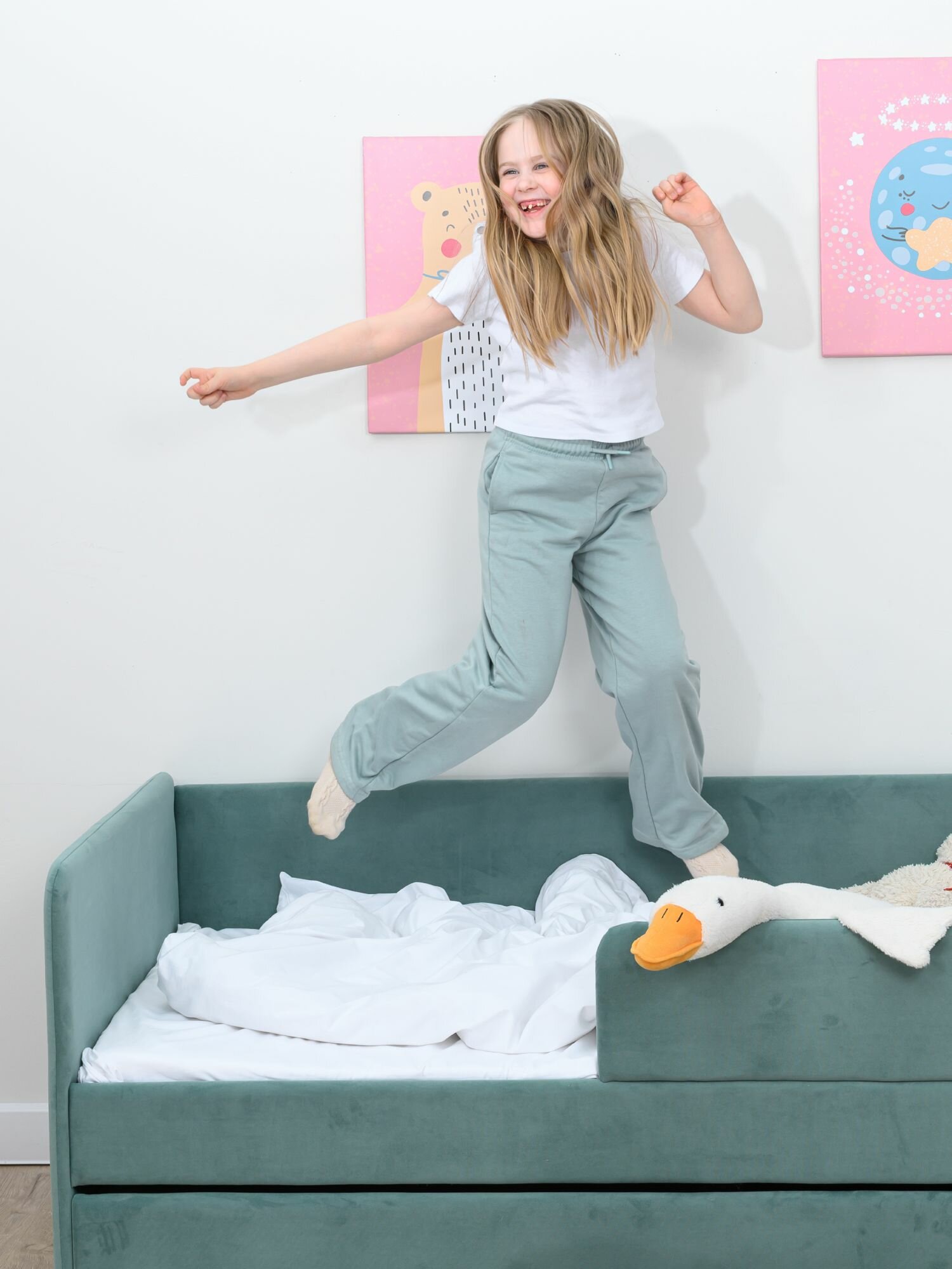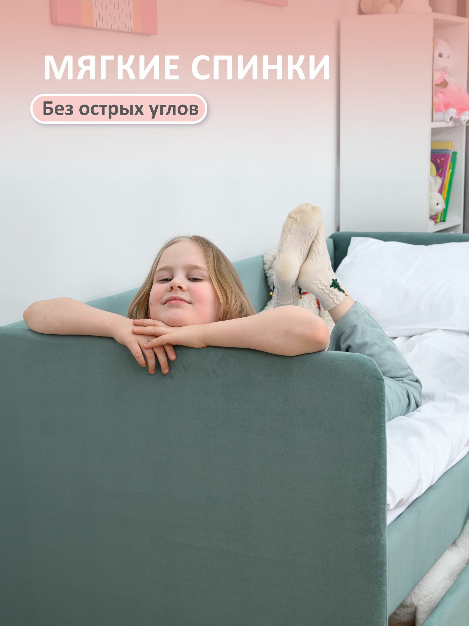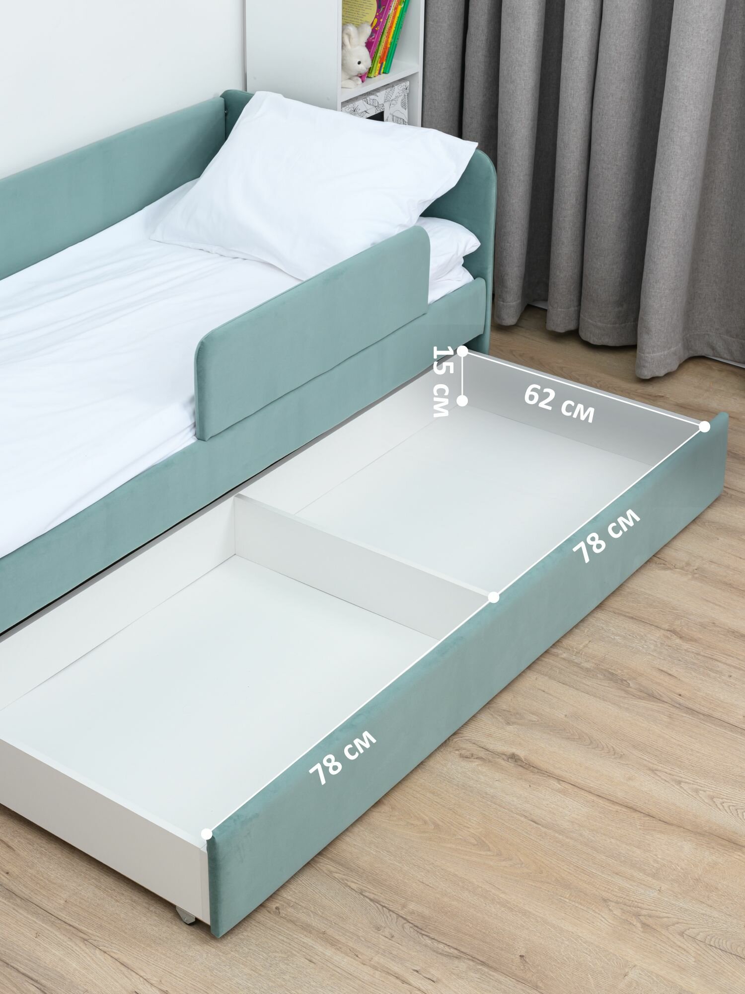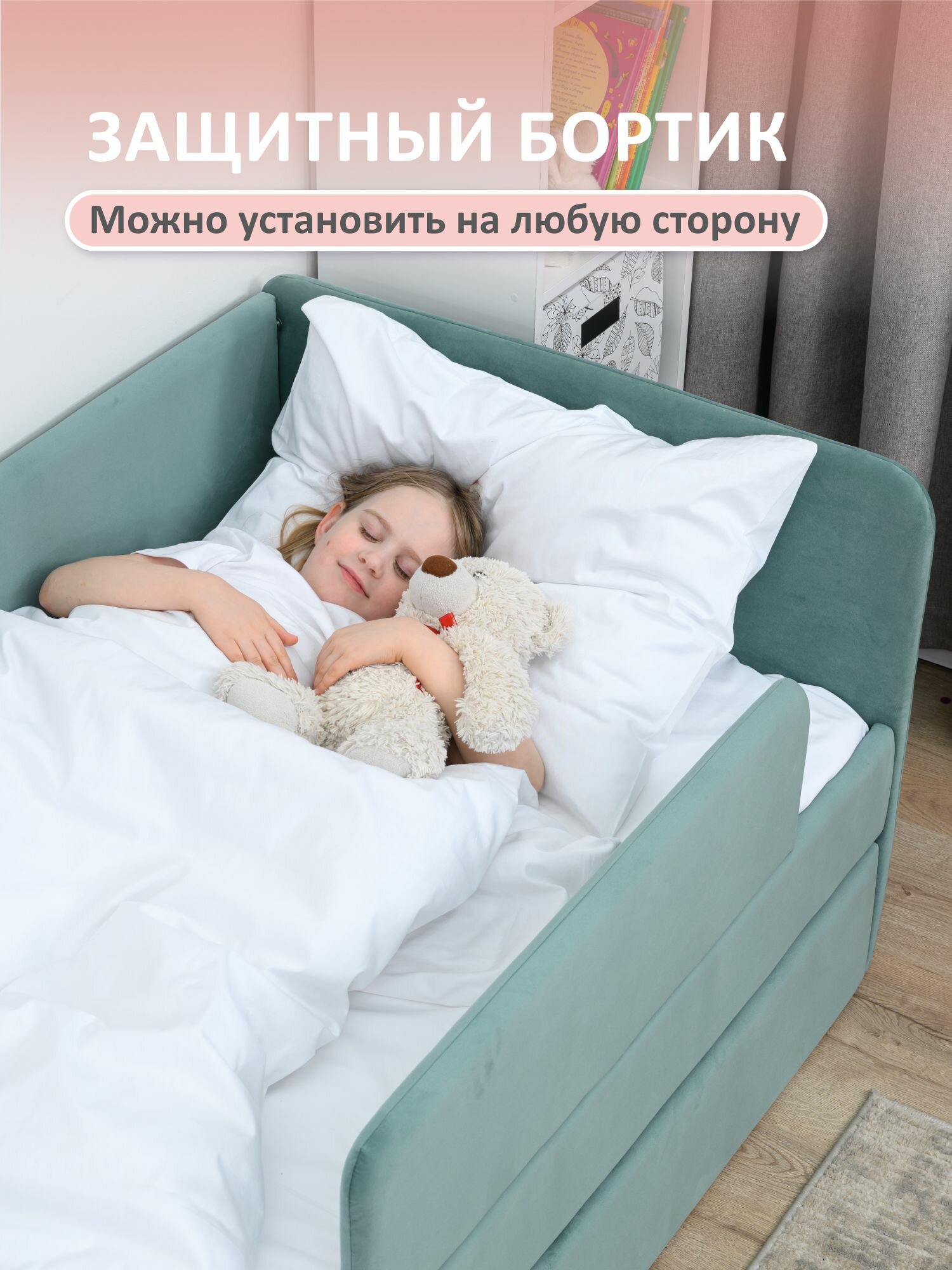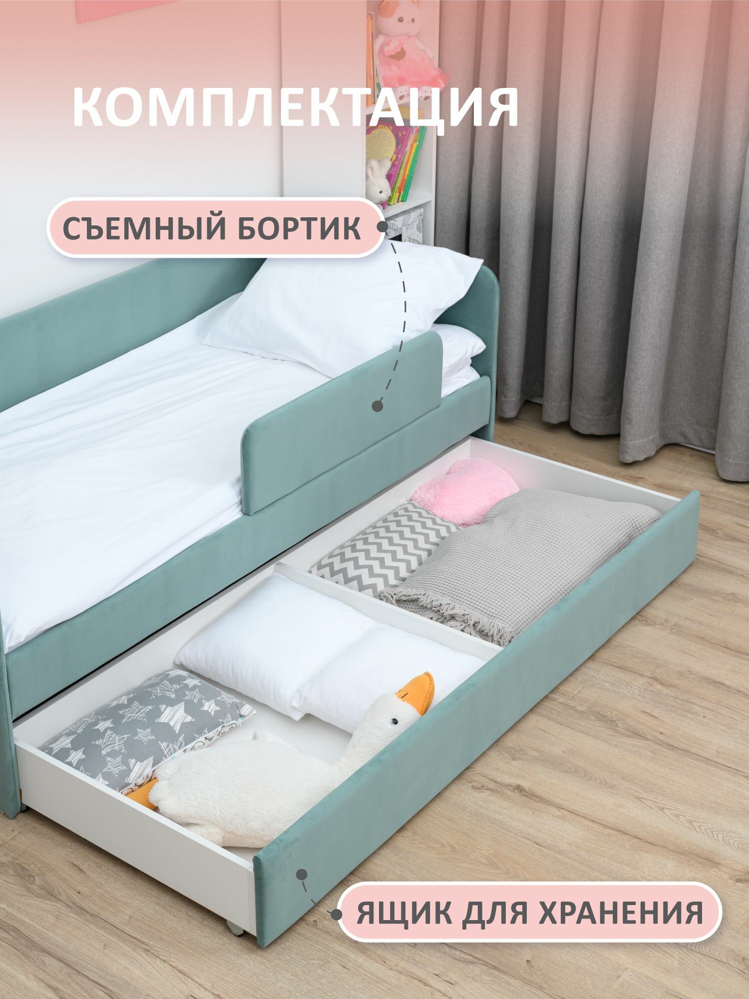 Купить Кровать детская 160x80 Romack Jenny Мята с бортиком безопасности, ящиком для белья и ортопедическим основанием