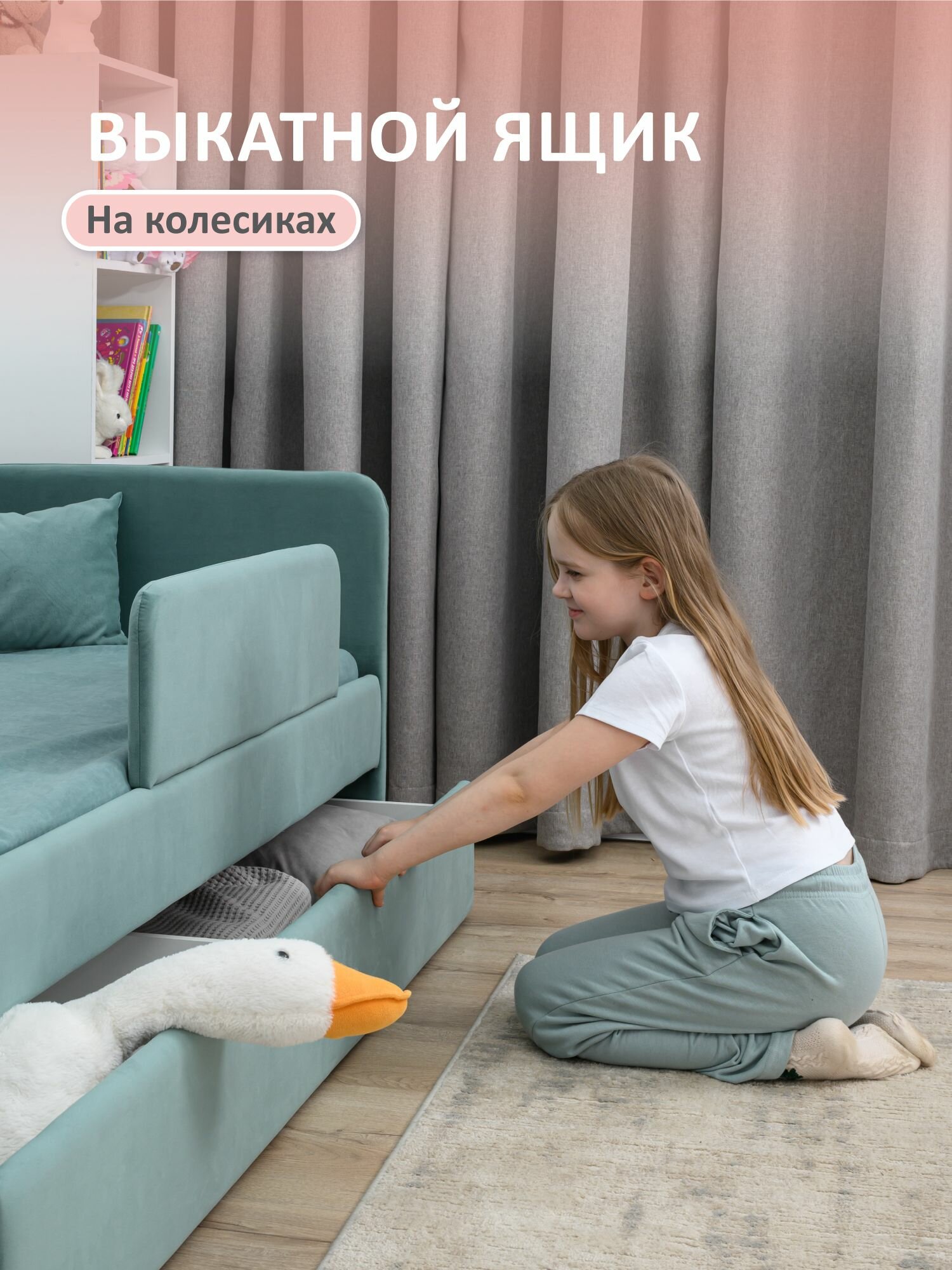 Кровать детская 200x90 Romack Jenny Мята с бортиком безопасности, ящиками для хранения и ортопедическим основанием
