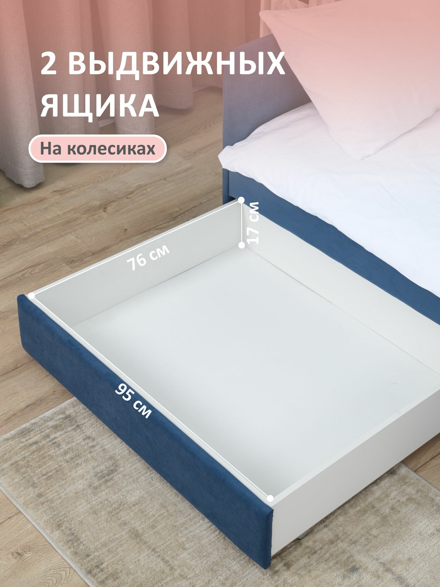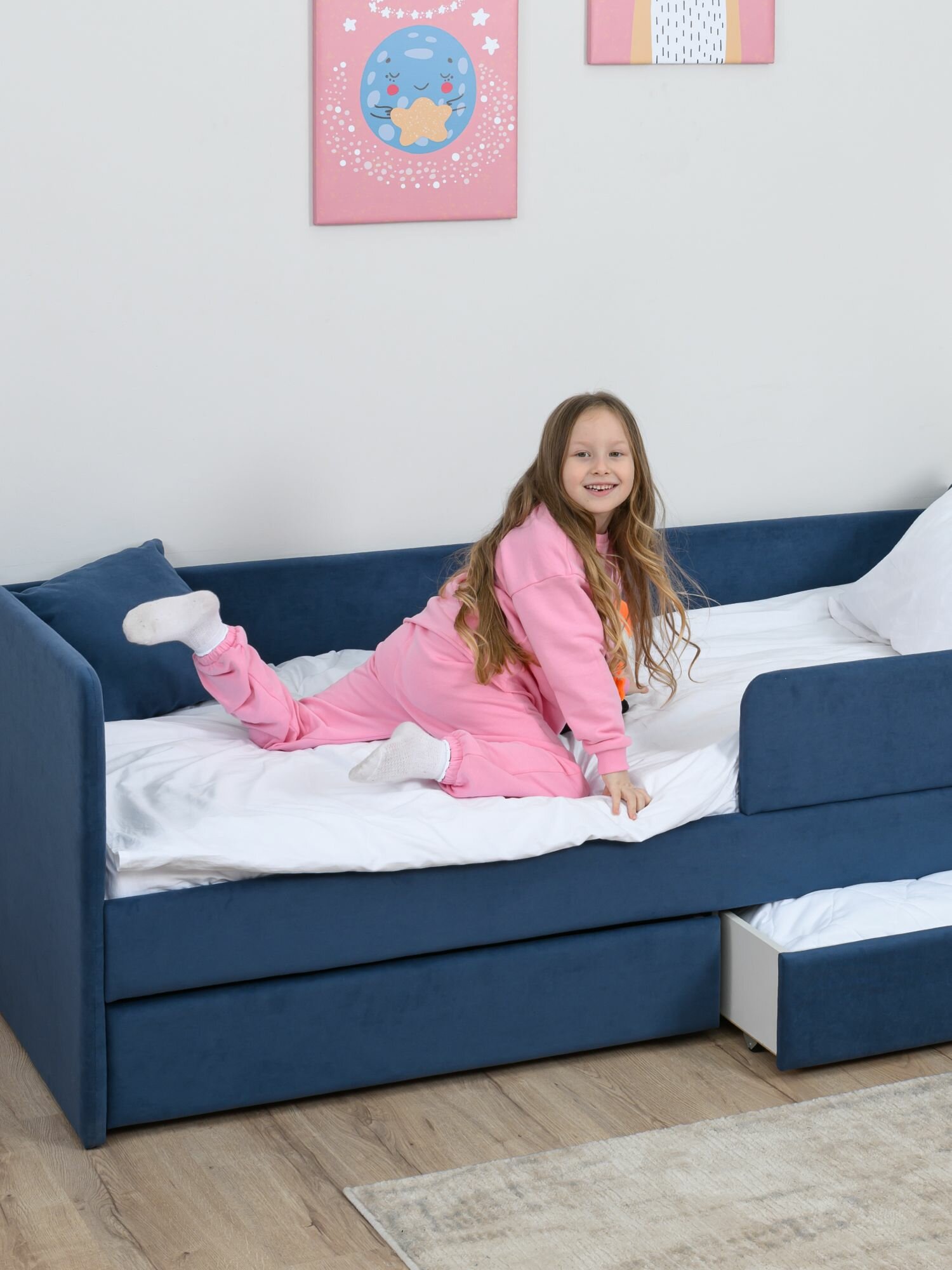 Купить Кровать детская 200x90 Romack Jenny Сапфир с бортиком безопасности, ящиками для хранения и ортопедическим основанием