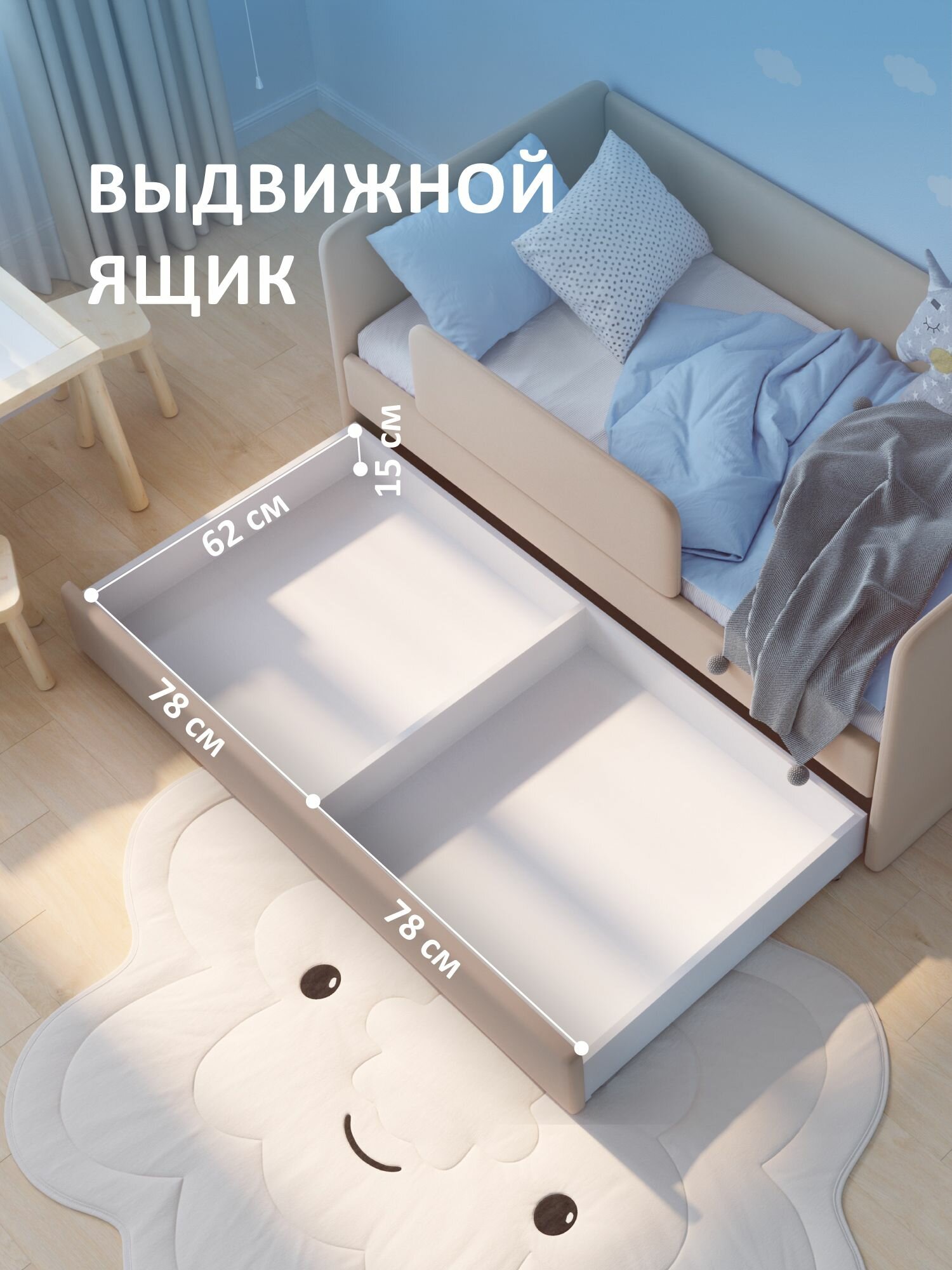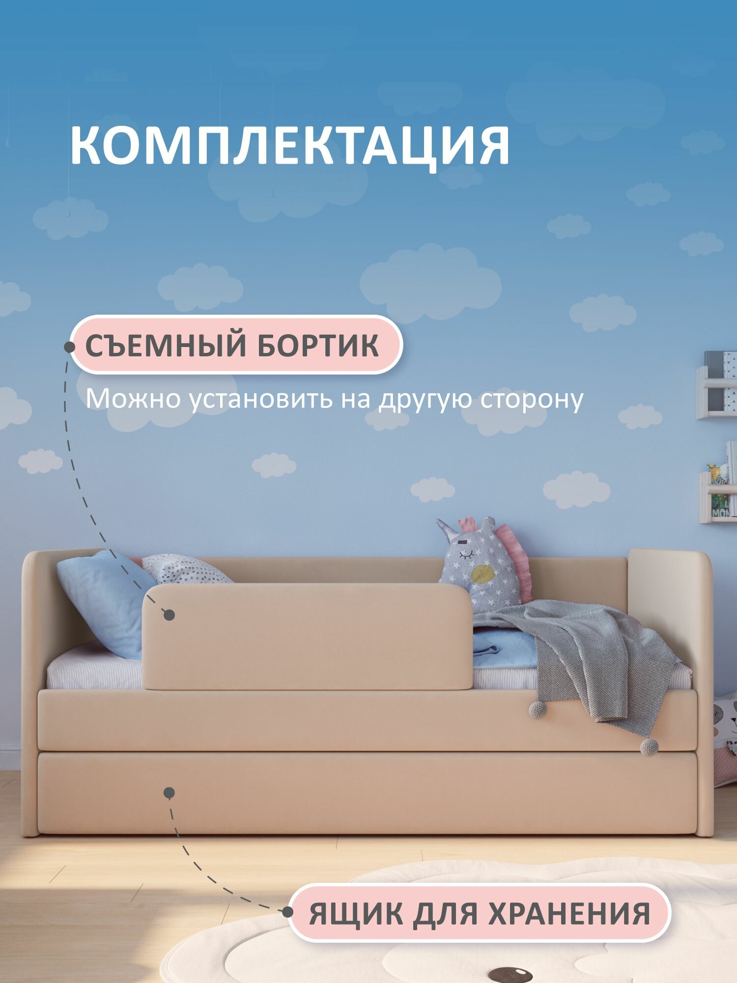 Купить Кровать детская 160x80 Romack Jenny Латте с бортиком безопасности, ящиком для белья и ортопедическим основанием