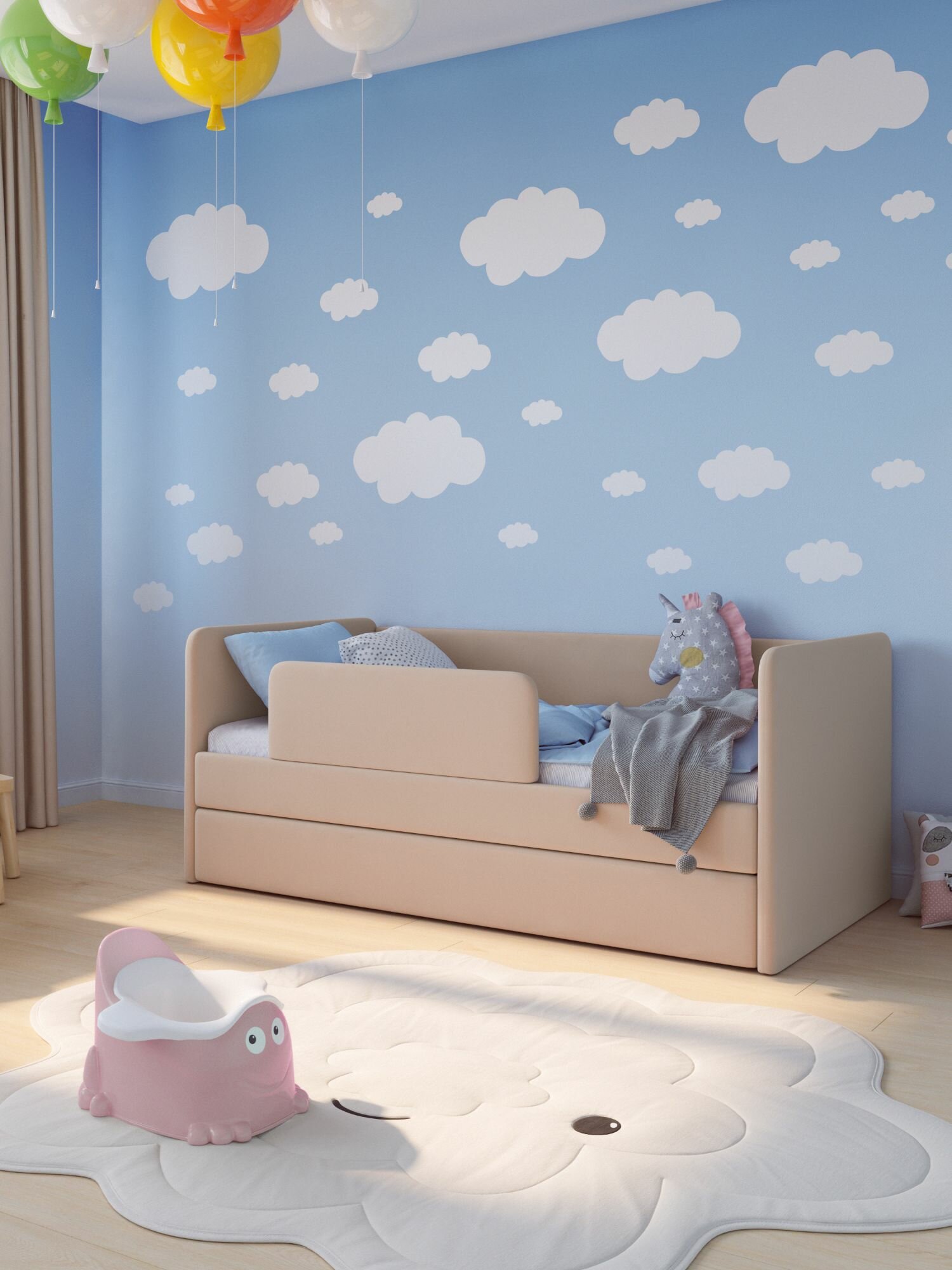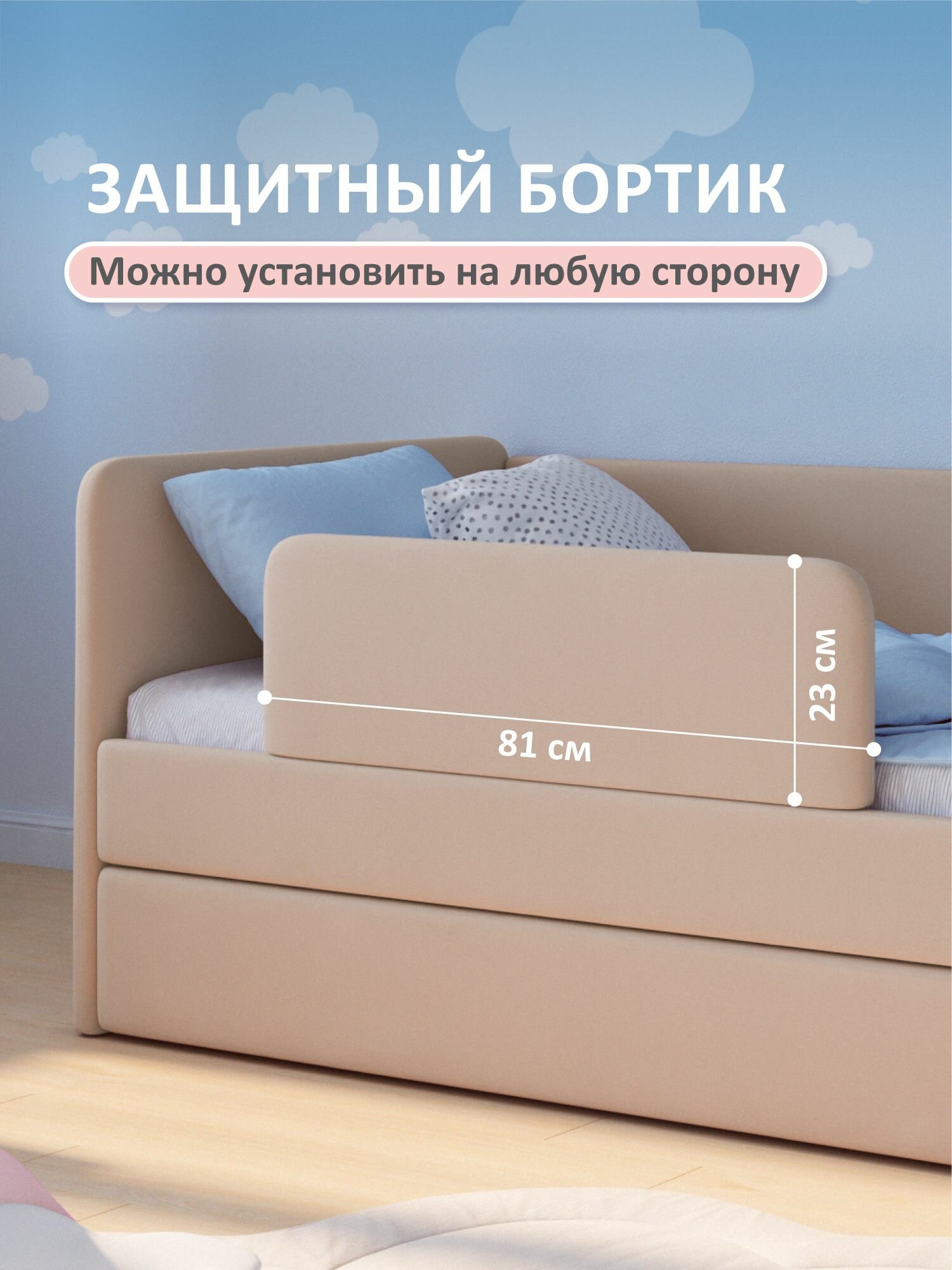 Кровать детская 200x90 Romack Jenny Светло-бежевый с бортиком безопасности, ортопедическое основание