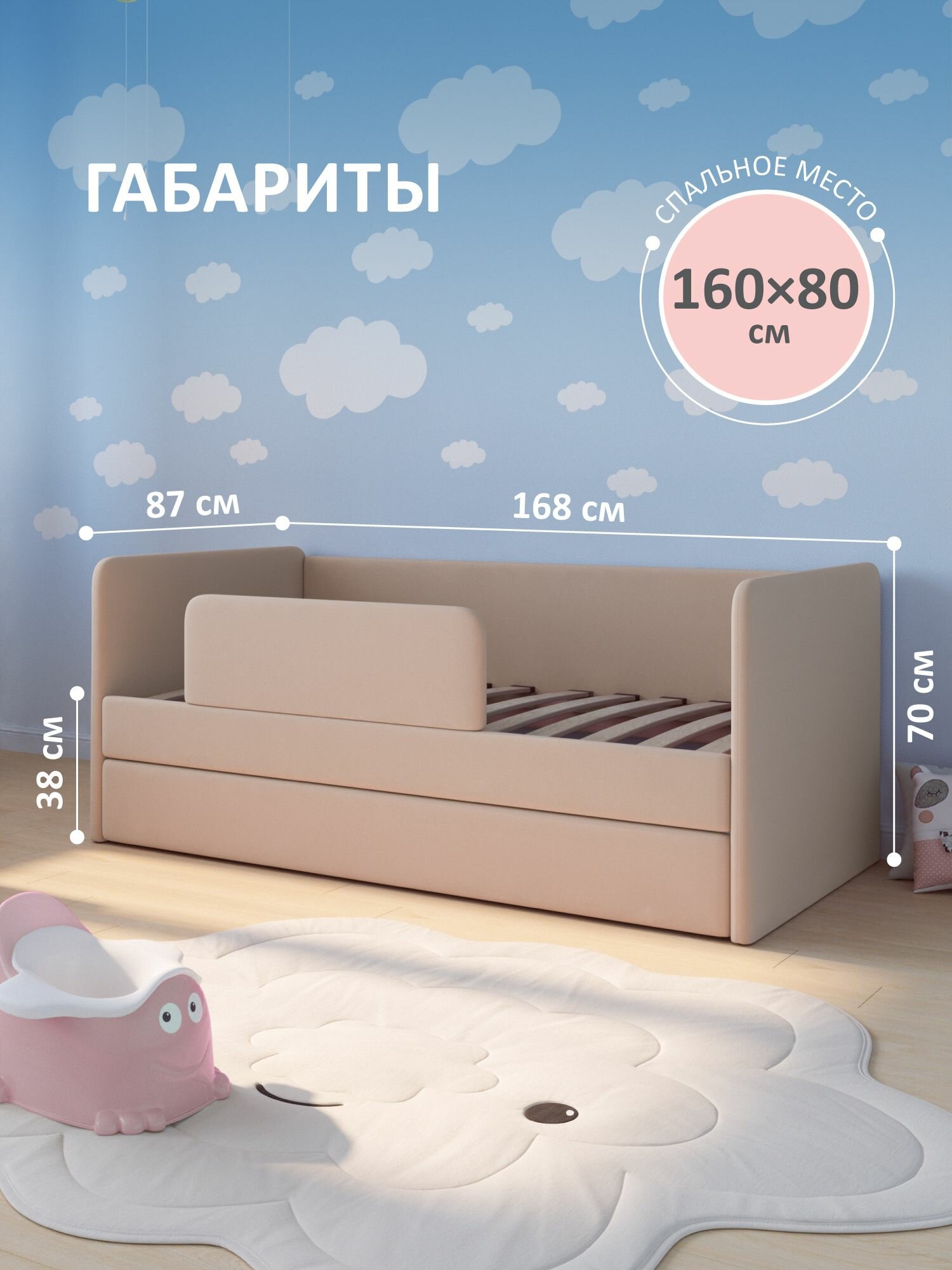 СохранитьКровать детская 160x80 Romack Jenny Латте с бортиком безопасности, ящиком для белья и ортопедическим основанием интересное: