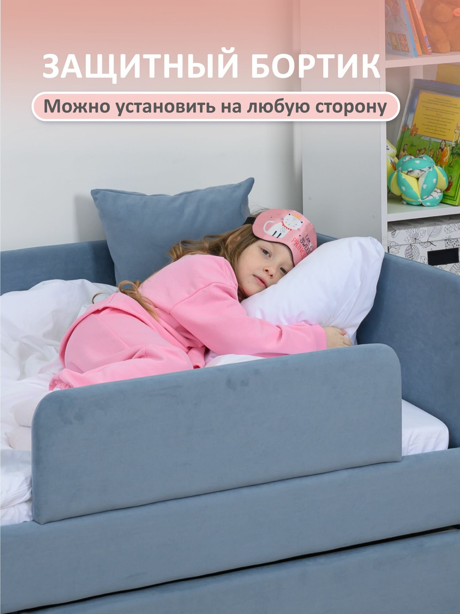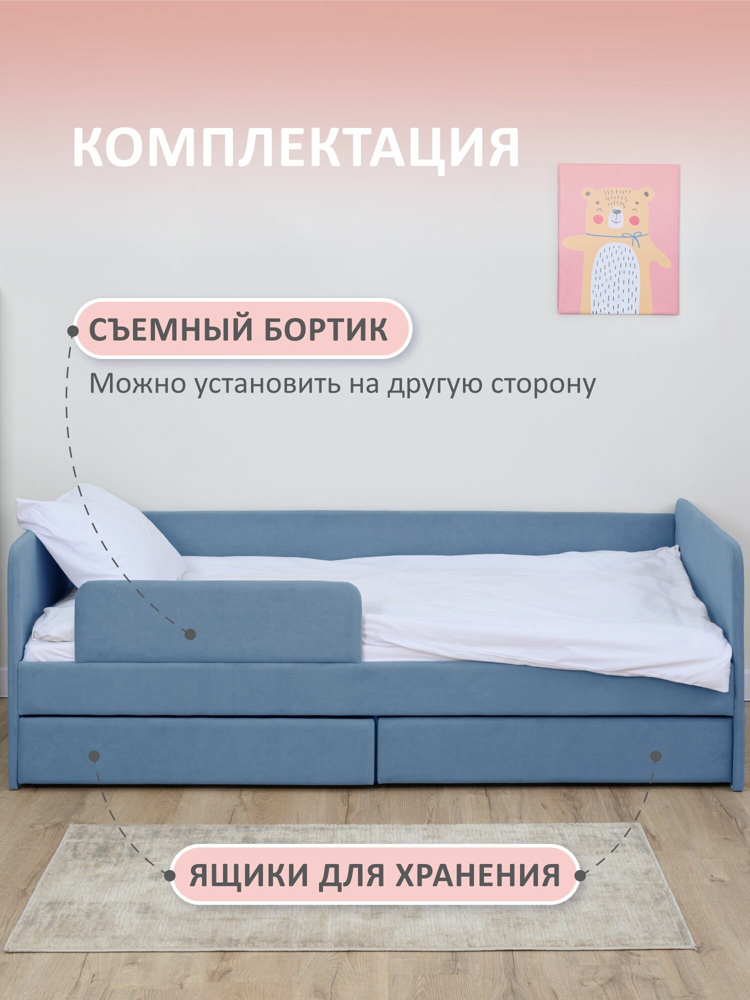 Кровать детская 180x80 Romack Jenny Сапфир с бортиком безопасности, ящиком для белья и ортопедическим основанием