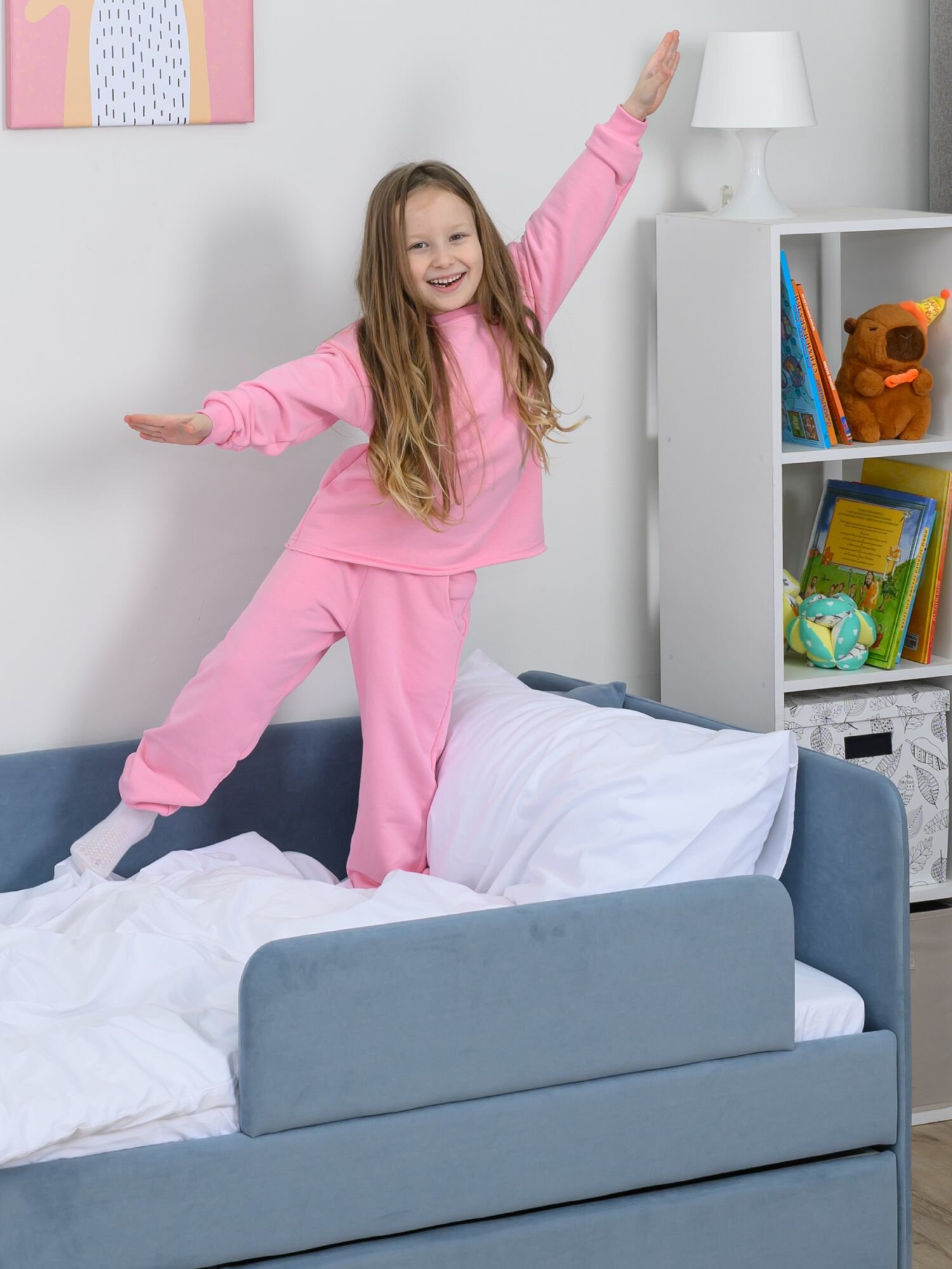 Кровать детская 160x80 Romack Jenny Светло-розовый с бортиком безопасности, ящиком для белья и ортопедическим основанием
