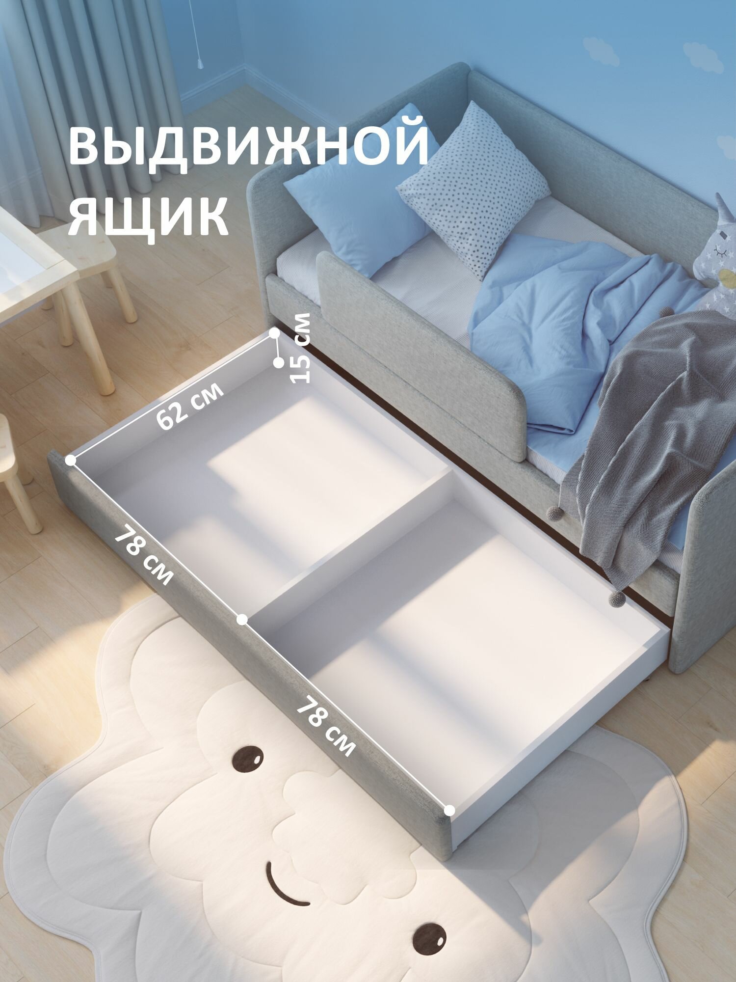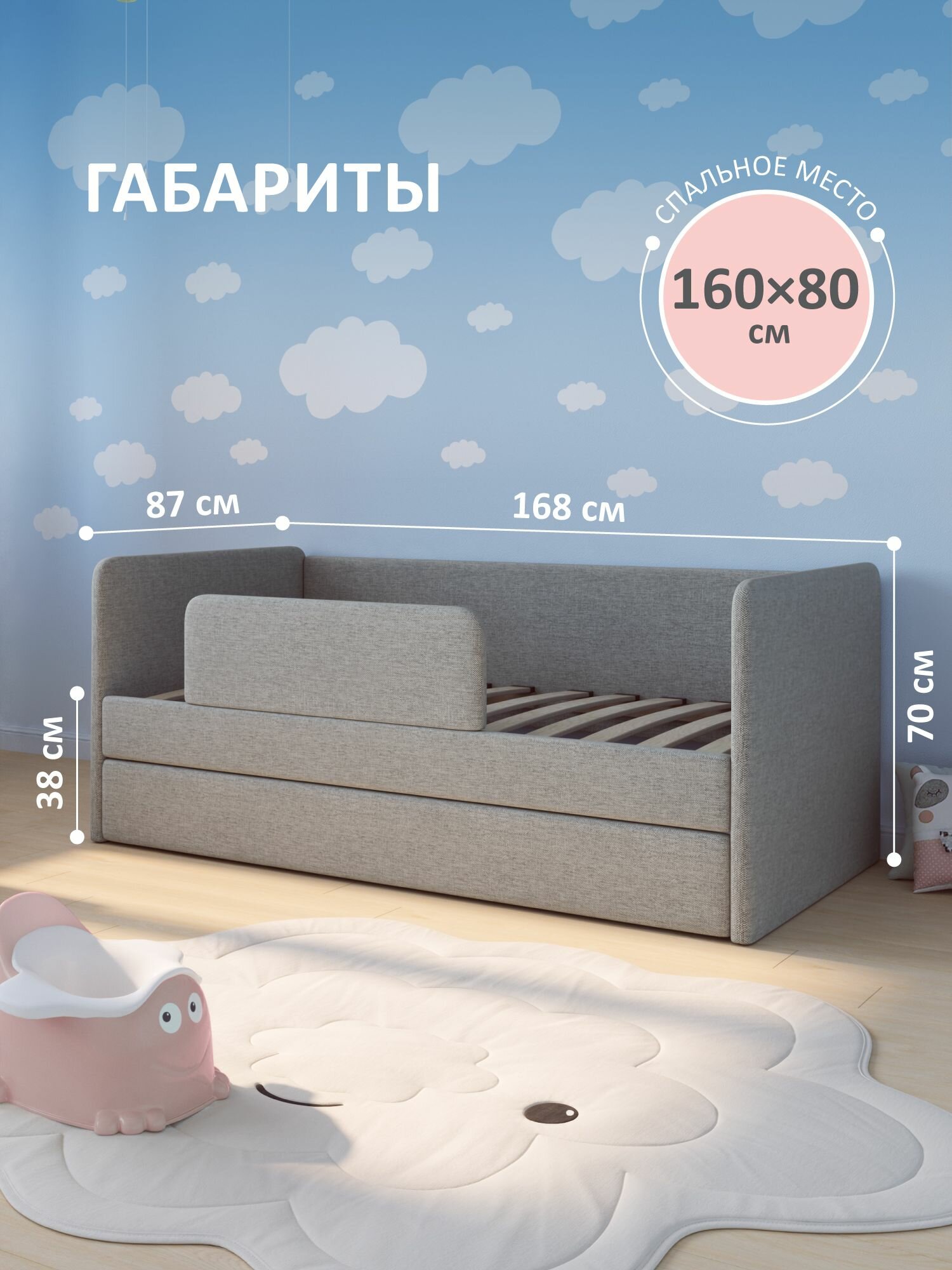 СохранитьКровать детская 160x80 Romack Jenny Рогожка грей с бортиком безопасности, ящиком для белья и ортопедическим основанием интересное: