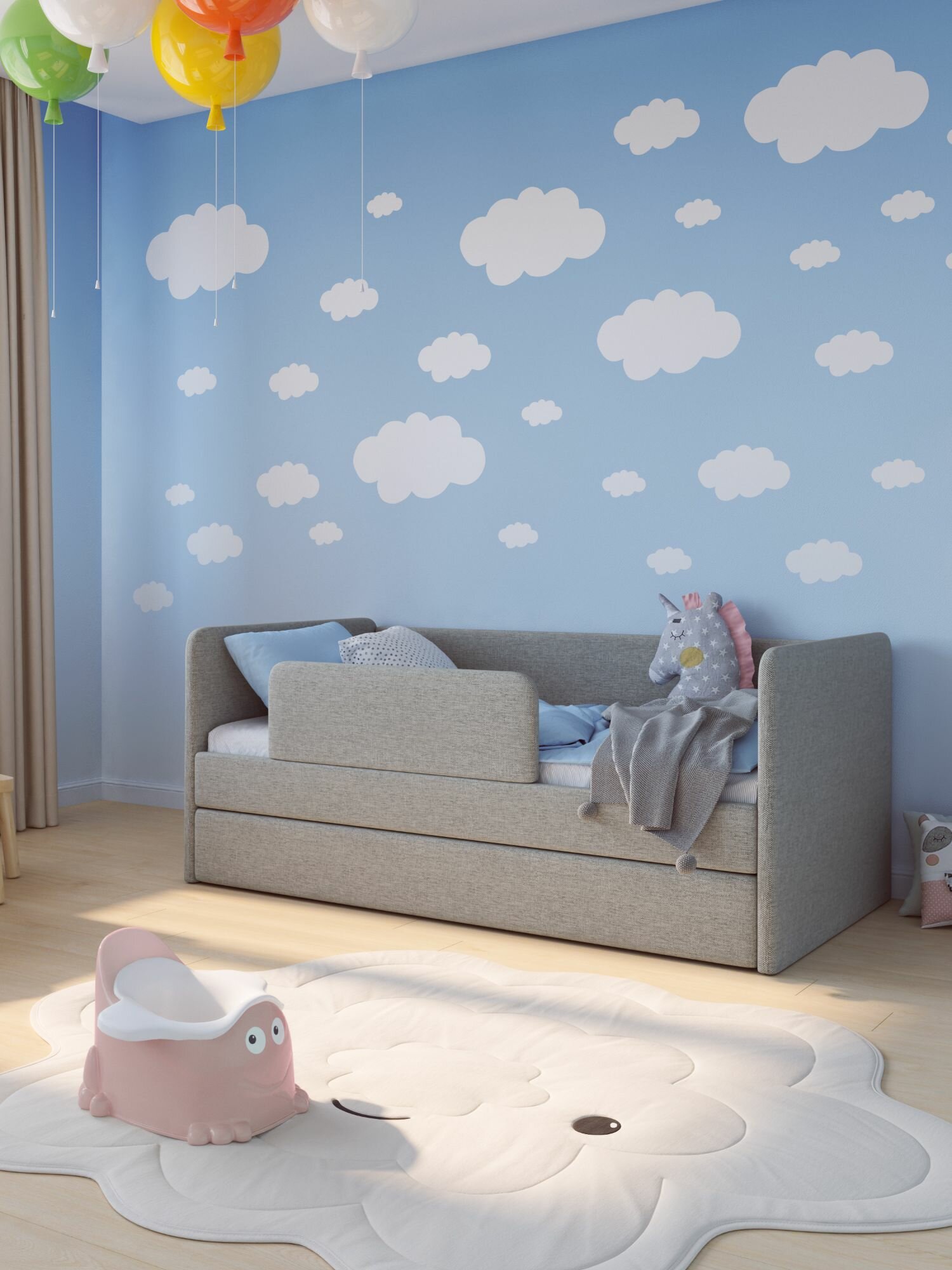 Кровать детская 200x90 Romack Jenny Серый пух с бортиком безопасности, ящиками для хранения и ортопедическим основанием