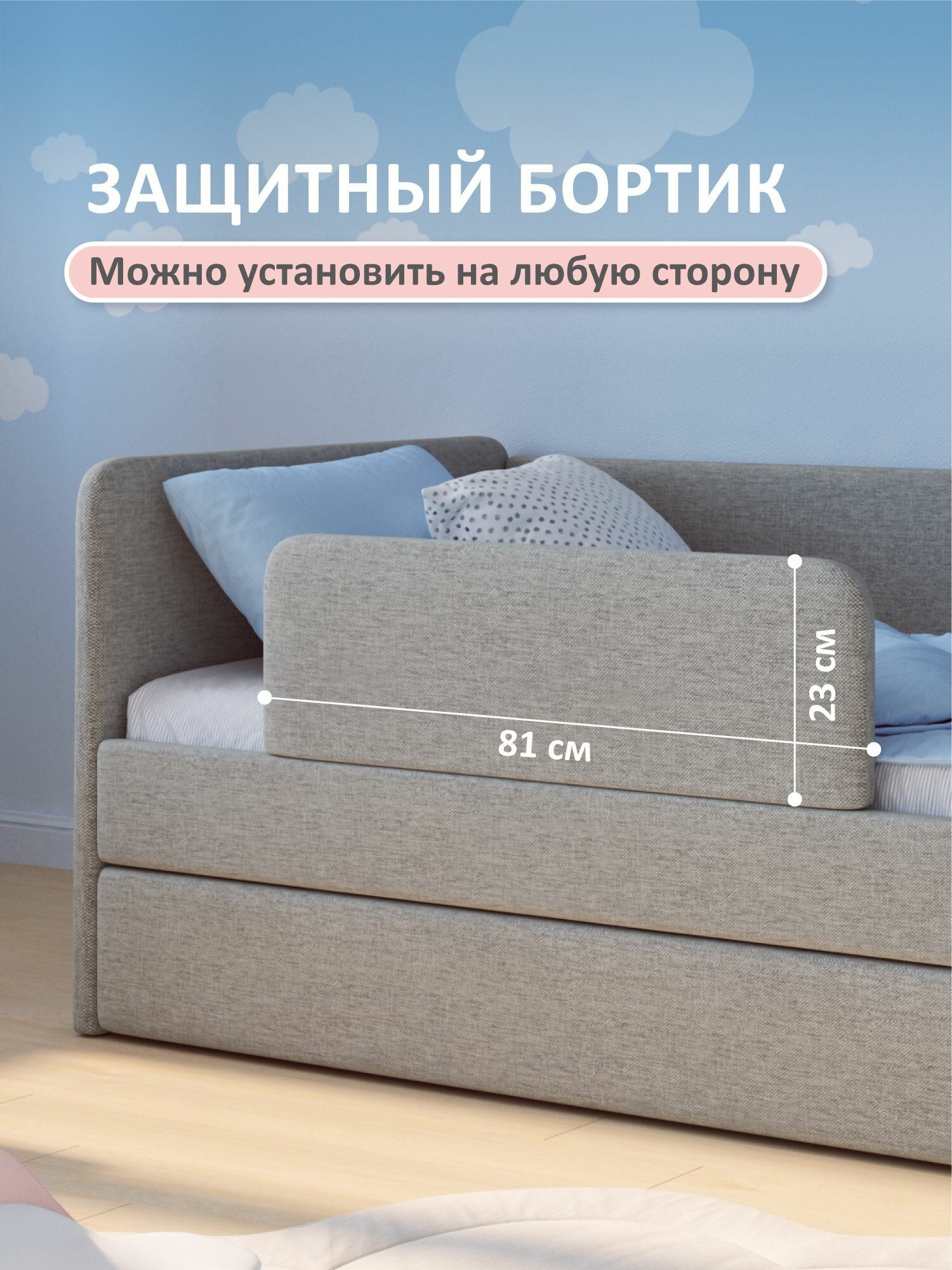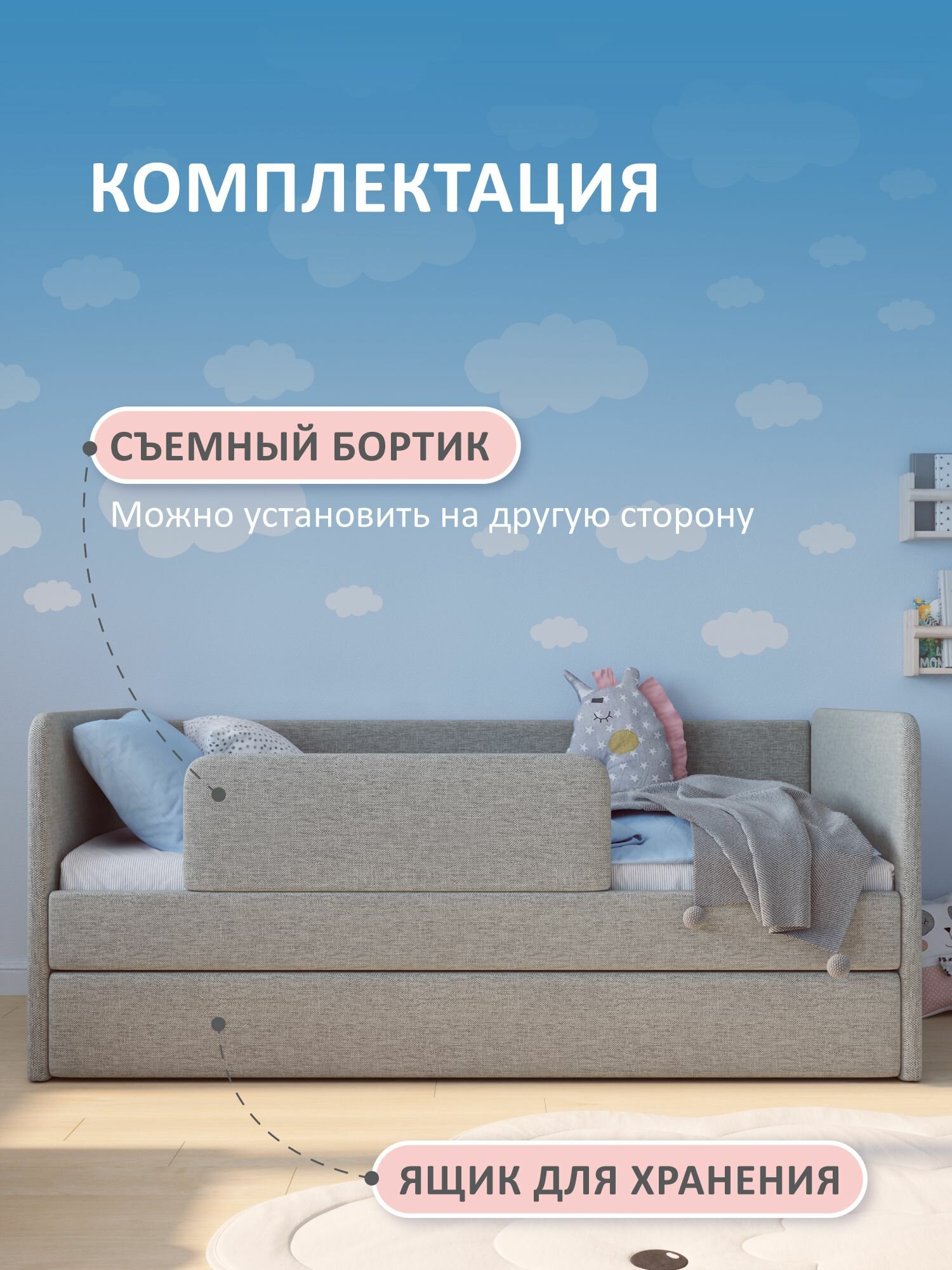 Кровать детская 180x80 Romack Jenny Рогожка грей с бортиком безопасности, ящиком для белья и ортопедическим основанием
