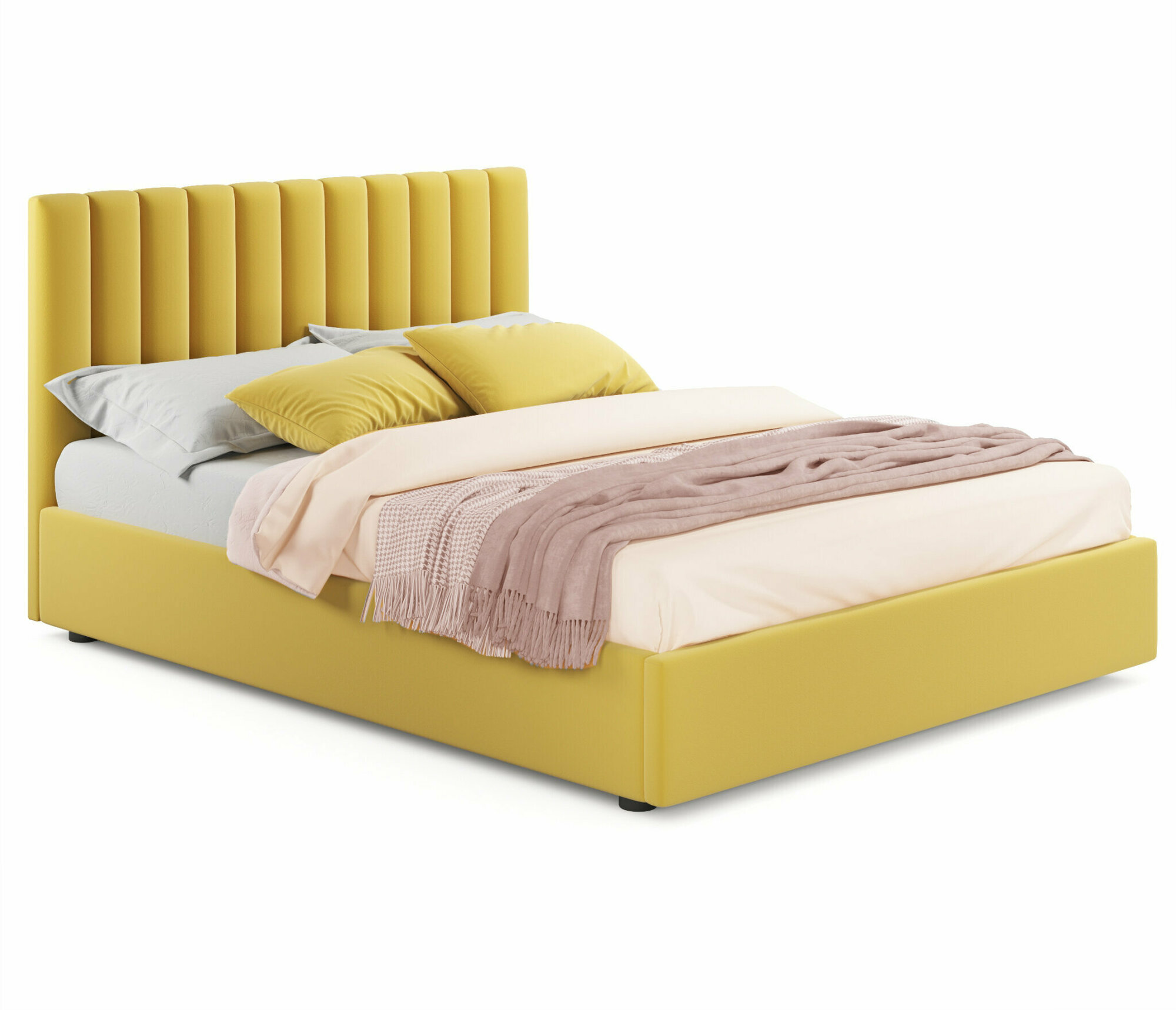 СохранитьДвуспальная кровать Olivia 1400 желтая Zeppelin с ортопедическим основанием, 140х200, мягкая из велюра, ламели интересное: