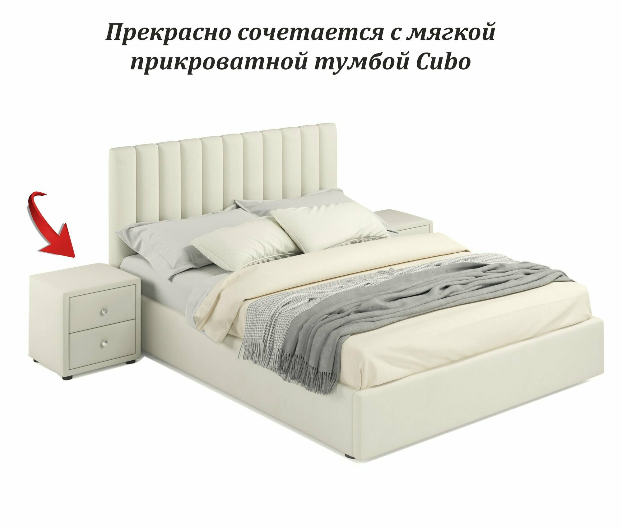 СохранитьДвуспальная кровать Olivia 1400 бежевая Zeppelin с ортопедическим основанием, 140х200, мягкая из велюра, ламели интересное: