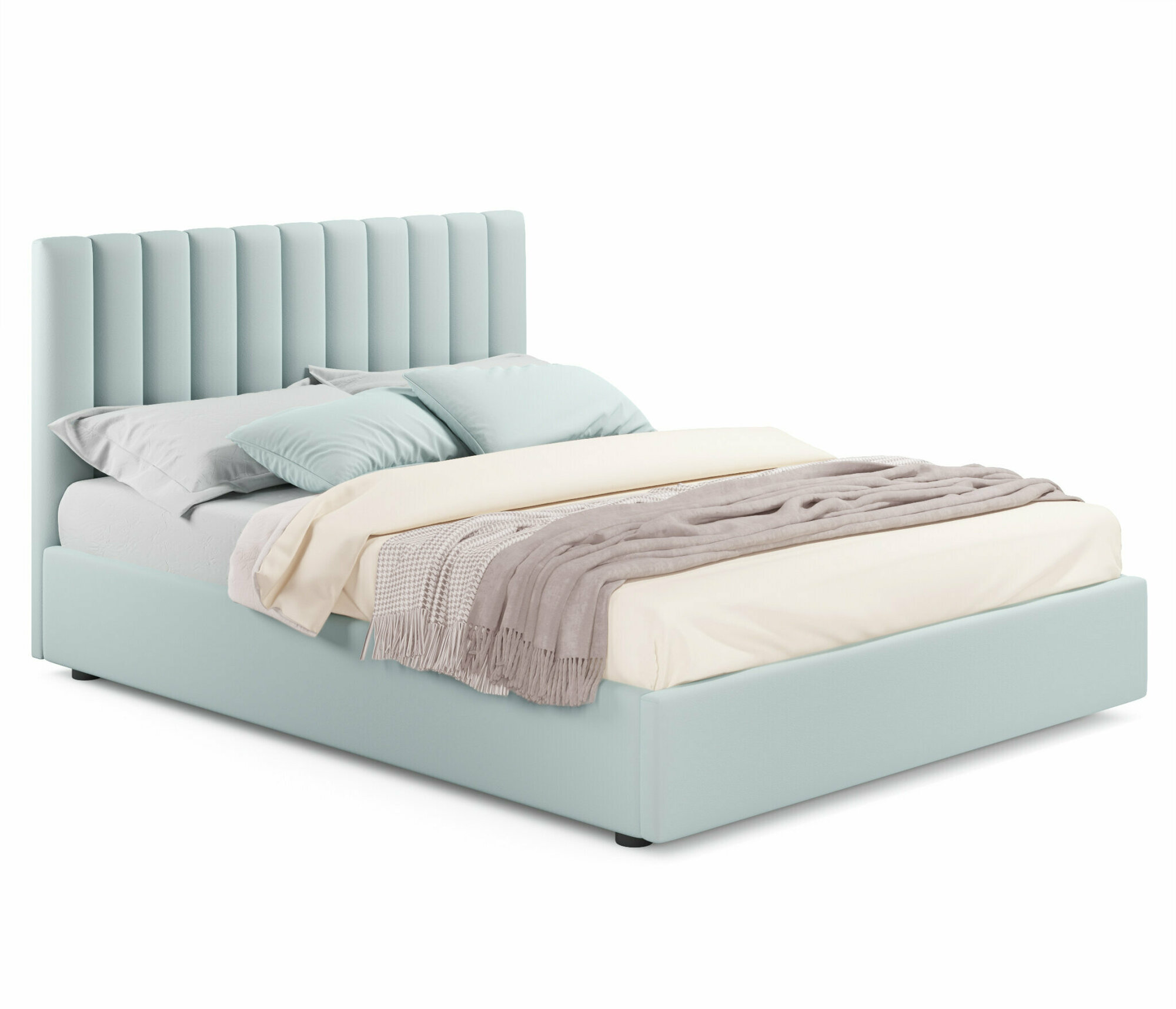 Кровать двуспальная Fly 140х200 мята пастель Zeppelin с ортопедическим основанием, мягкая из велюра, ламели, на ножках