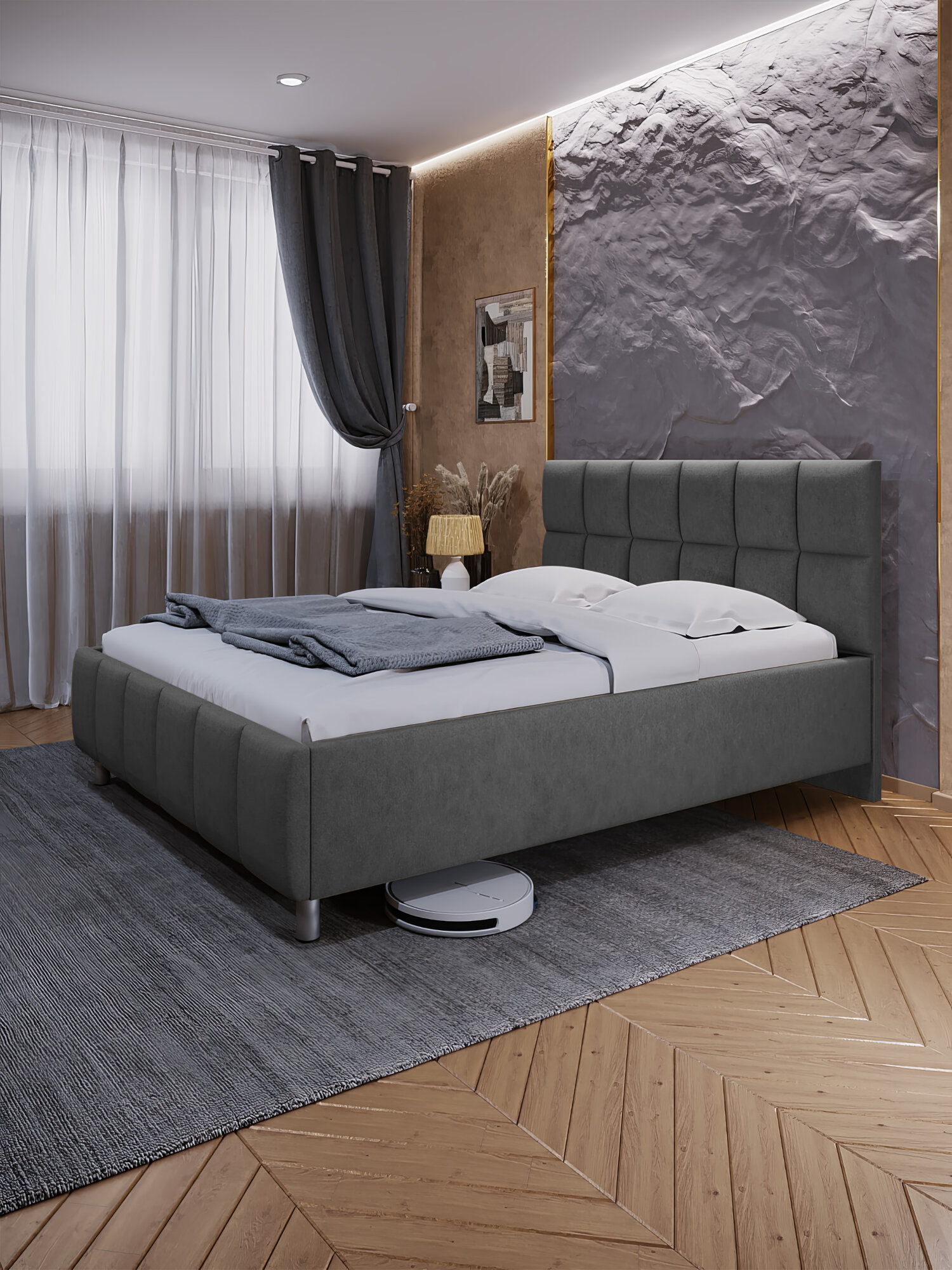 Кровать с матрасом Роза Серая Велюр 160х200