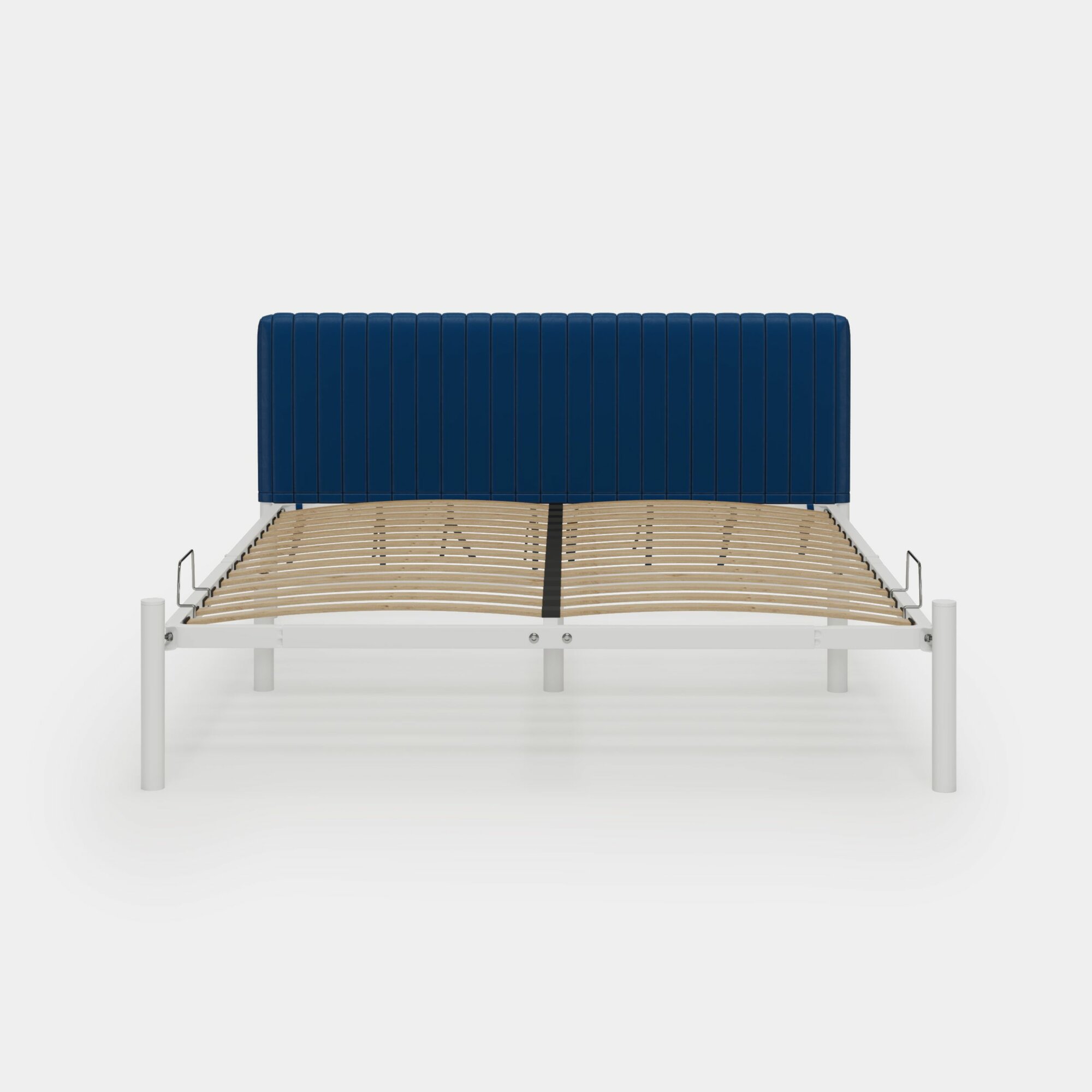 Купить Двуспальная кровать металлическая 160х200 синяя "Гаррона" белый каркас, DreamLite