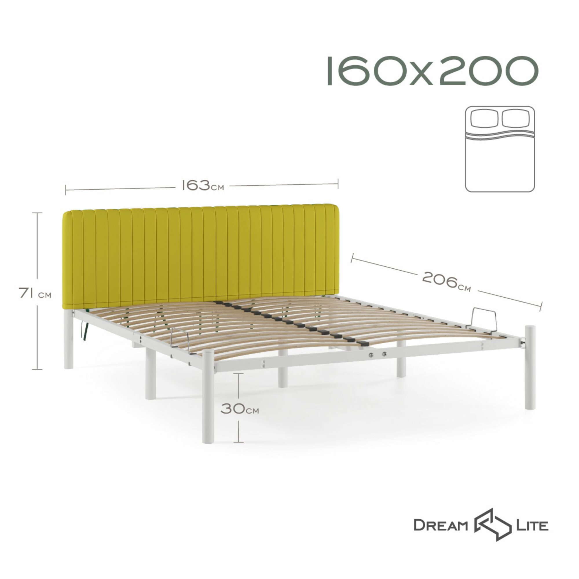 Купить Двуспальная кровать металлическая 160х200 желтая "Гаррона" белый каркас, DreamLite